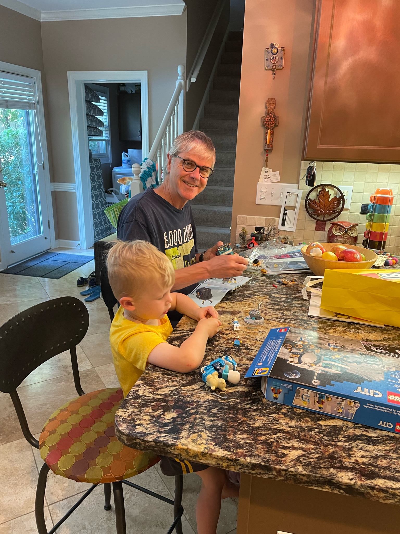 Whenever we travel out west to visit our kids and their families, my wife always likes to take a small gift for our grandchildren. Of late, that has been Legos which always gives me a fun activity helping them to build the kit. So, it was an unexpected treat when our daughter arrived with that familiar yellow Lego bag, a reward for her youngest son for being such a great passenger on his flights. It right off the bat gave us something fun to do together.