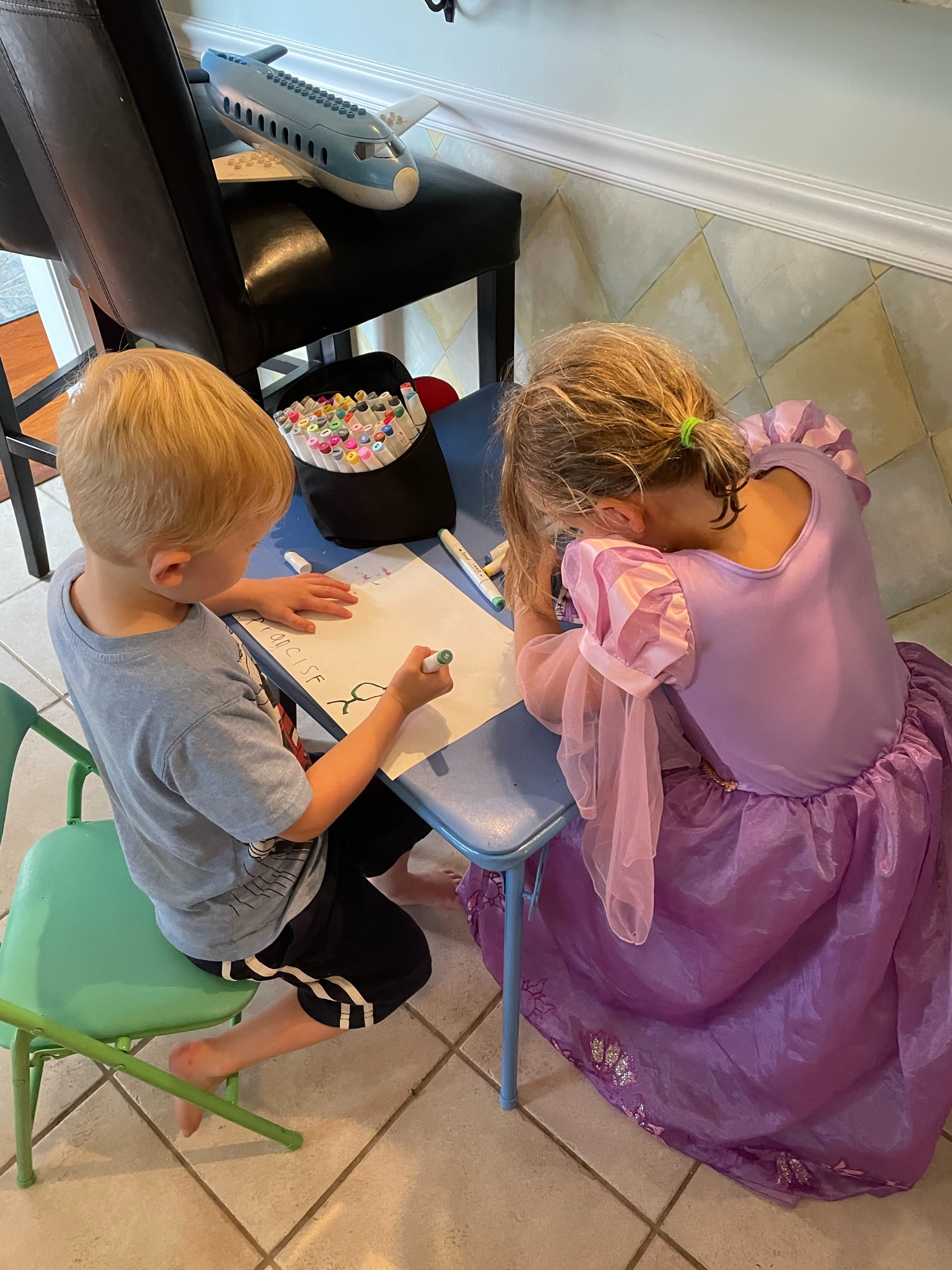 It had also been since November 2019 that we had had this many grandkids together. It was interesting to see how our granddaughter paired up with her younger cousin to create some art together…