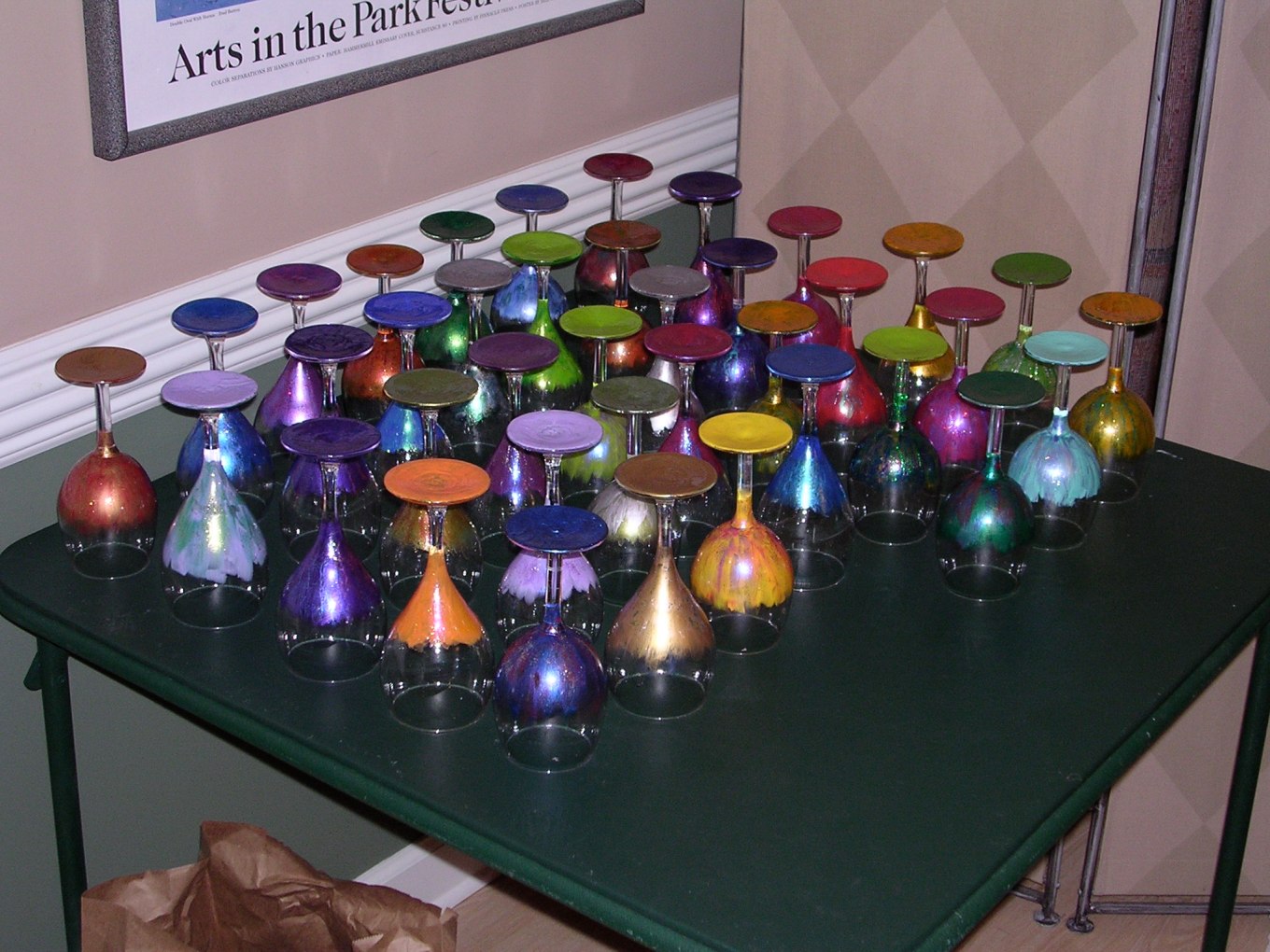 In this photo taken in 2003, our dining room became a temporary art room where my wife and her life-long friend hand painted wine glasses cranking out quite a few.