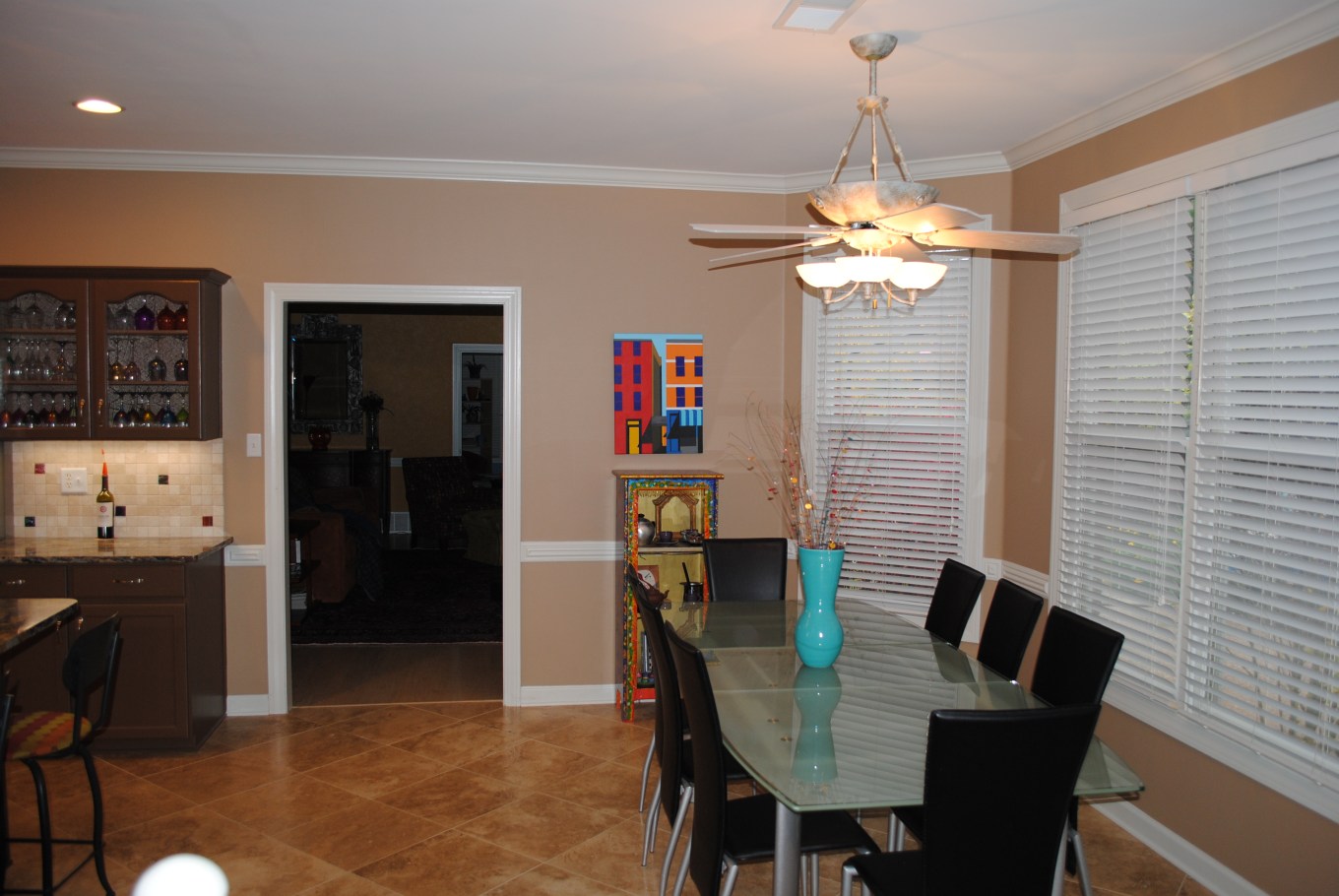 Sometime prior to 2005, we repainted the room from its original beige and green colors to a vibrant red adding additional dining room furnishings.