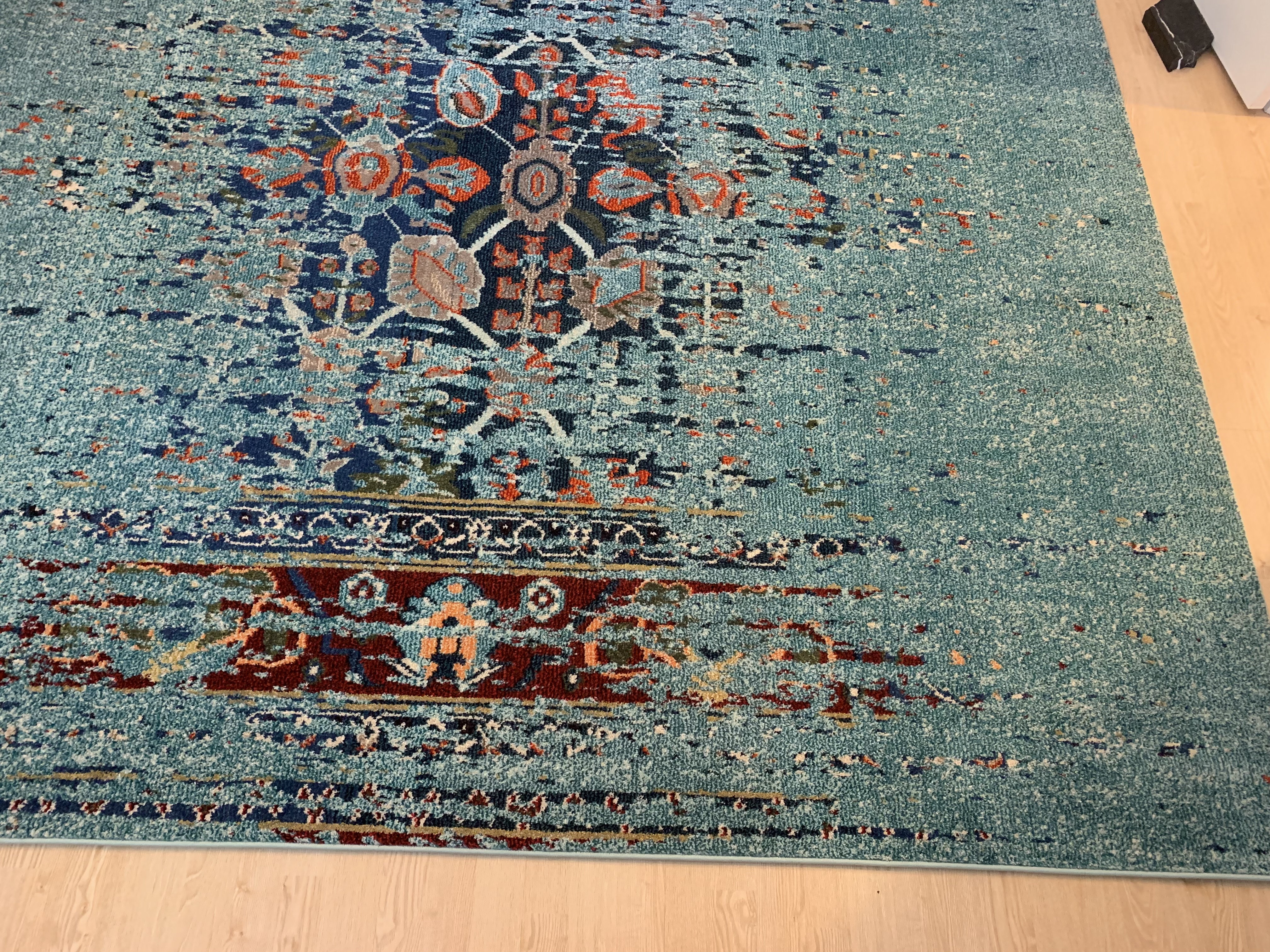 The first step was to find a new home for the dining room furniture. Next came the selection of a new rug…