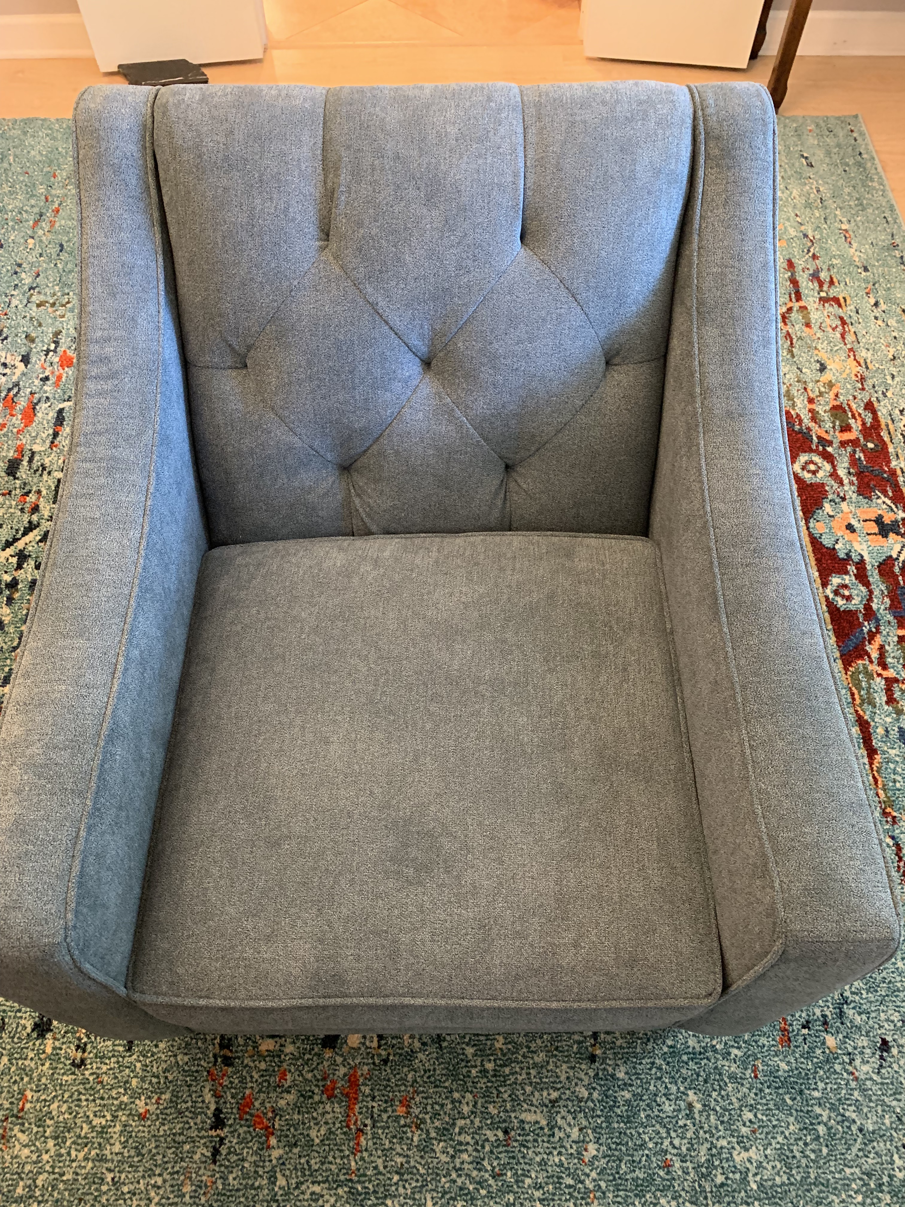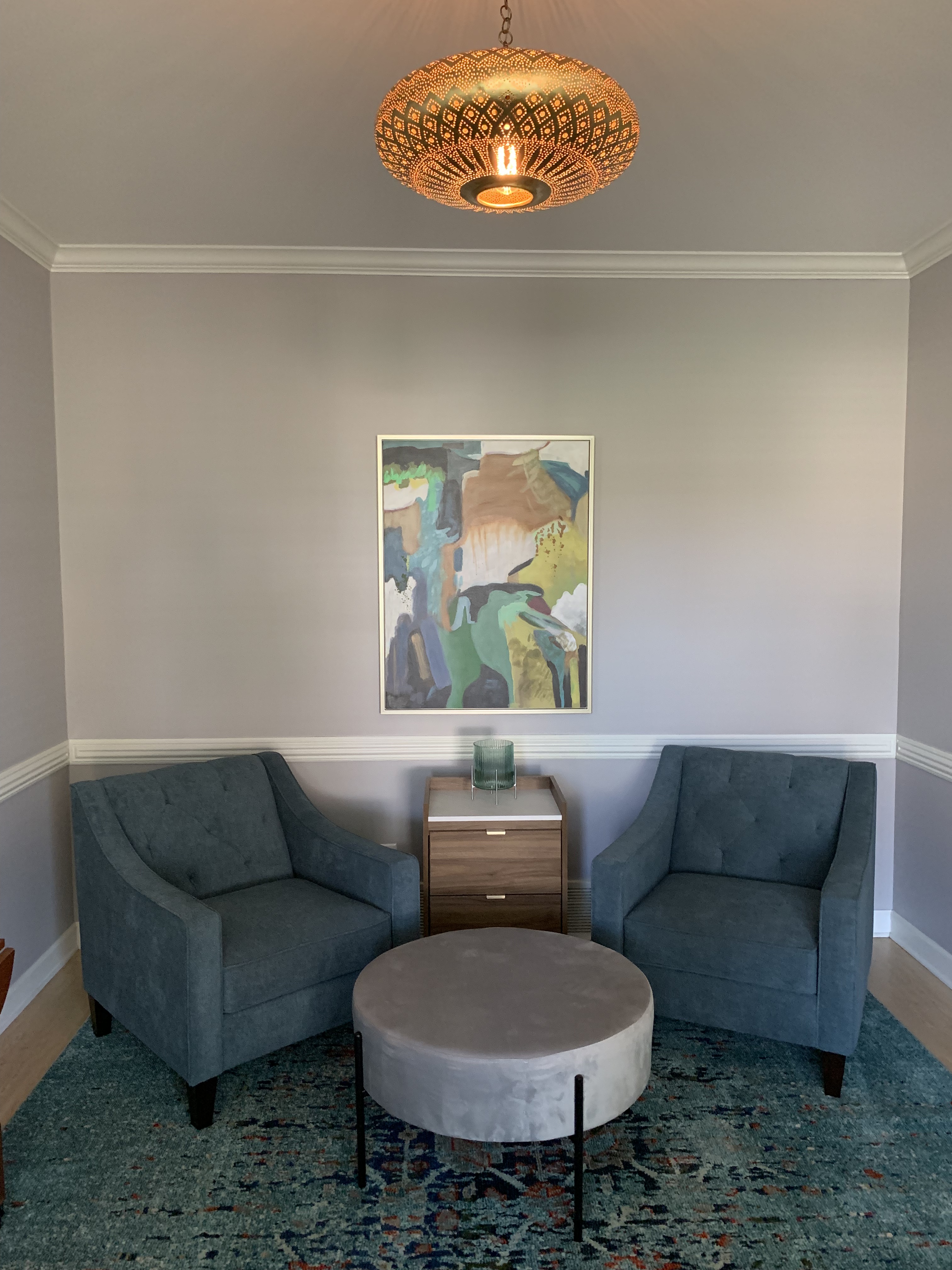 With the painting complete, I could now roll out the new rug and place the new chairs my wife had purchased.