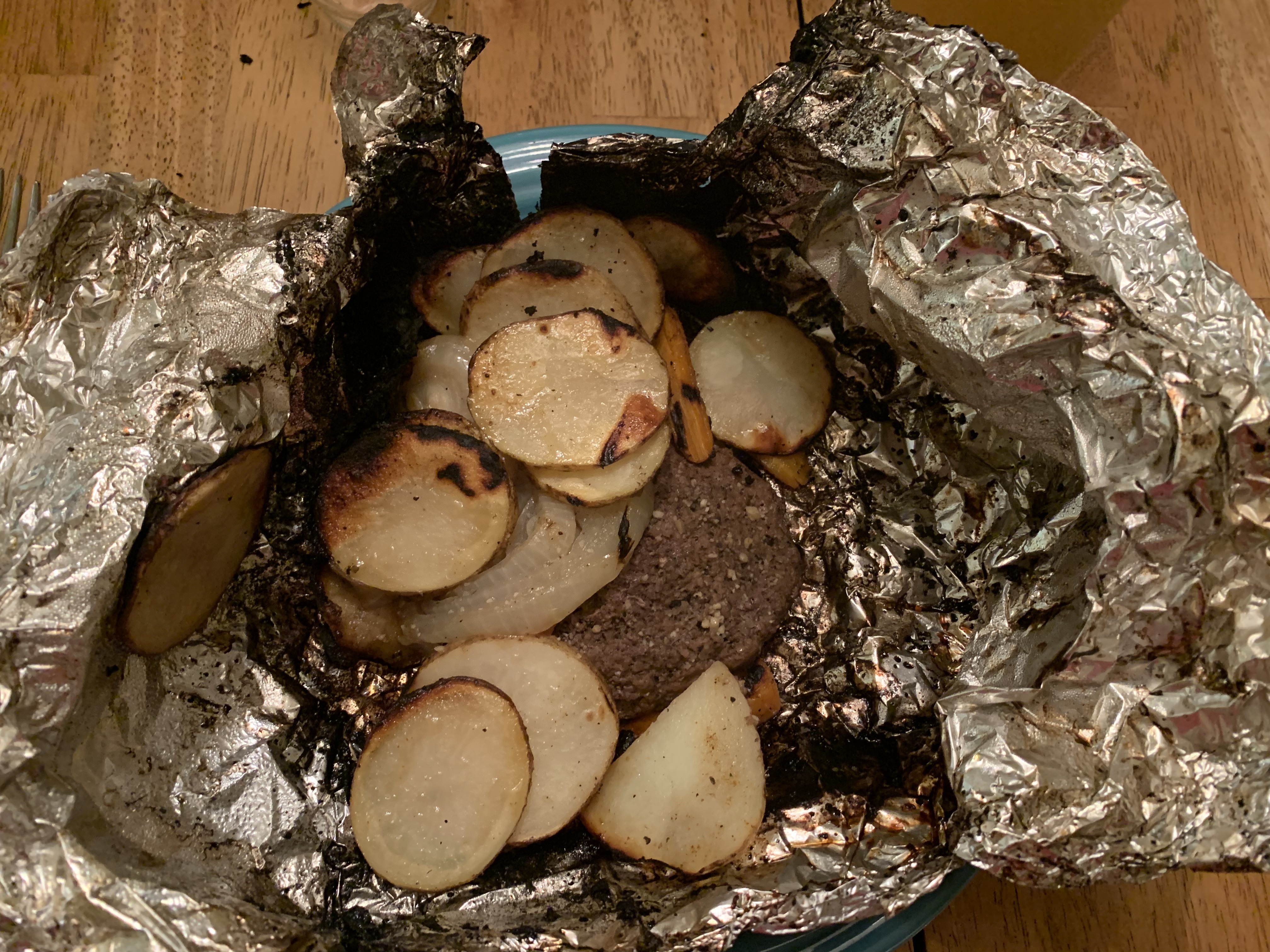 When we returned, our sister had built a fire for what would be for some of us, our first campfire grilled foil dinner since growing up and camping in Montreat.