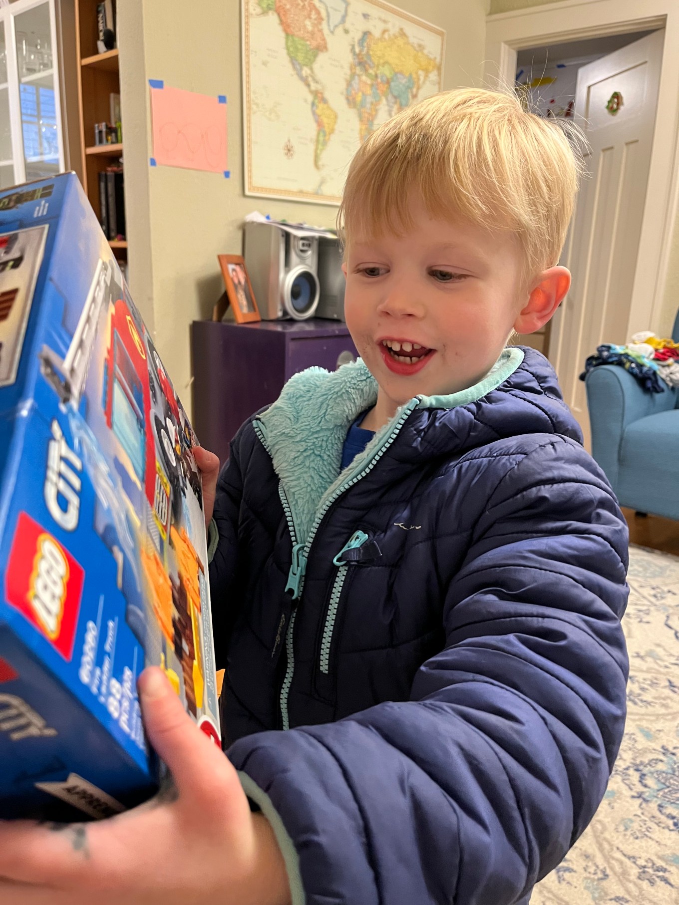 When it was time to pick up our other grandson, I got to repeat the LEGO surprise all over again with similar results.