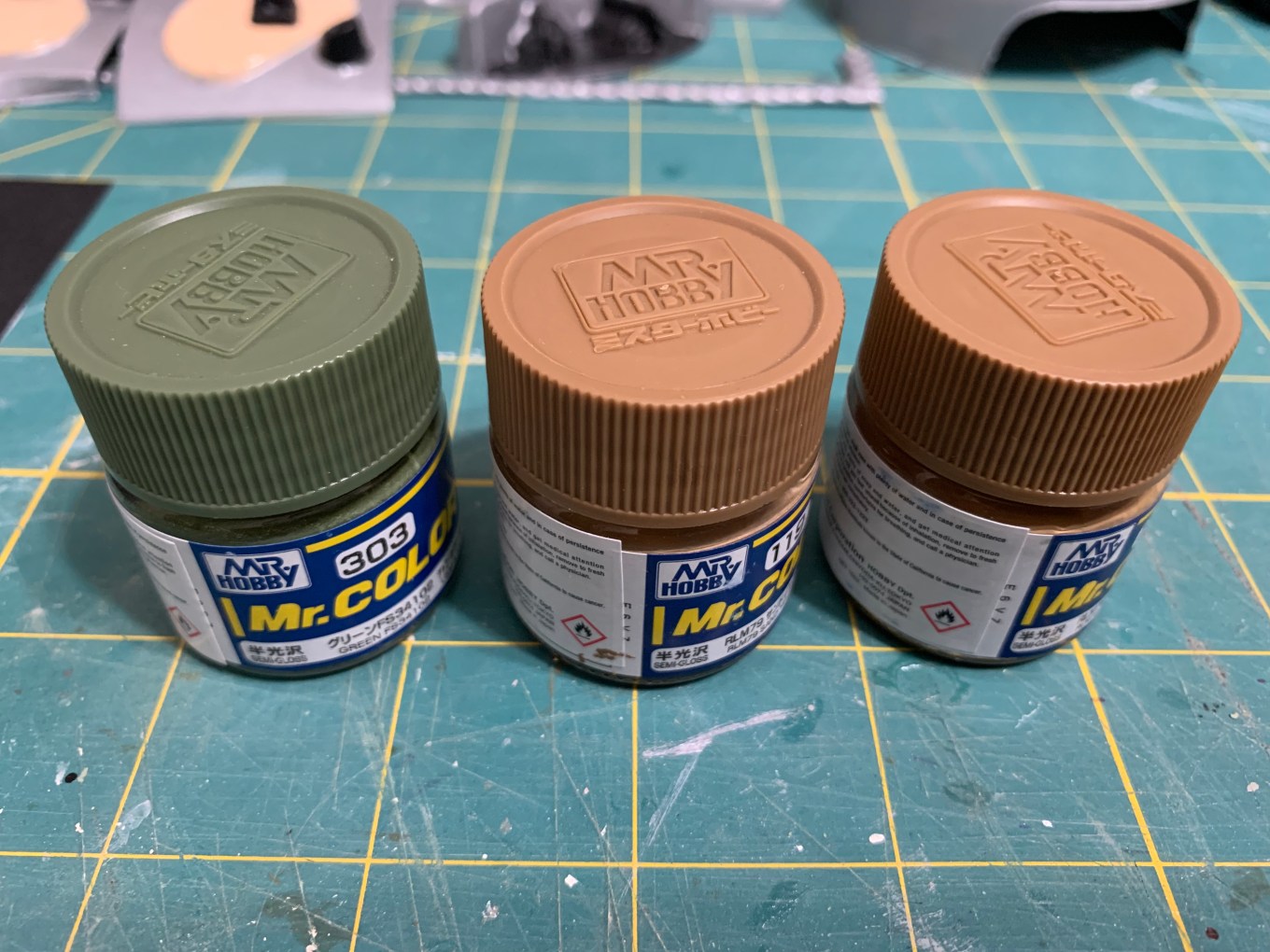 Two coats looked very nice so now I was ready for my camouflage green. I diluted the green a little less than 1:1 as I was painting over the brown paint. Using the box photo again as a sort of guide, I painted my random pattern. Turns out it took three coats to fully hide the brown color underneath and for not being an artist, I thought it turned out fairly nicely.