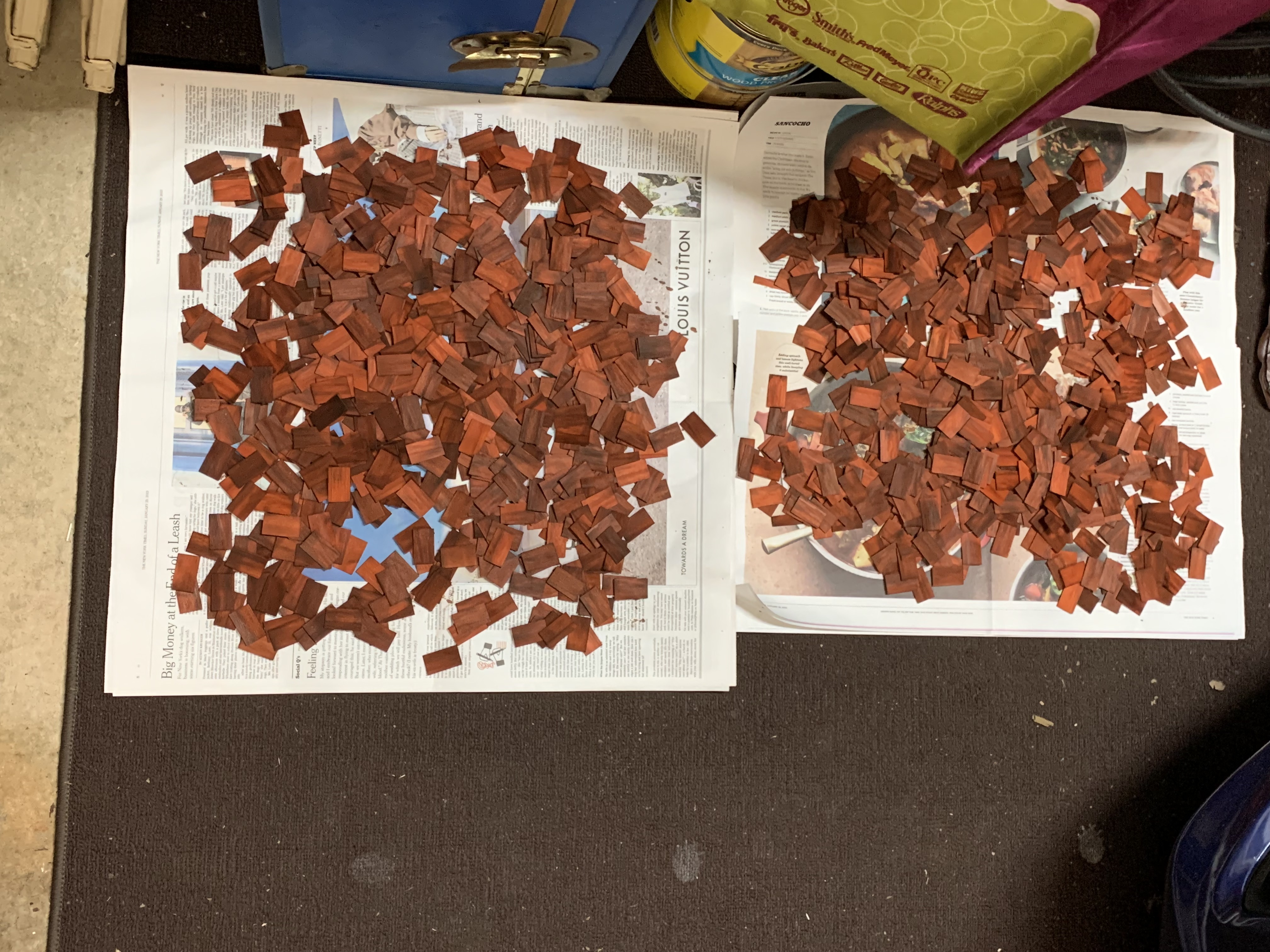 …I was ready to glue the third floor down (a step I did not complete on the last doll house) and proceeded to dye the shingles which I did with the same reddish-brown dye.