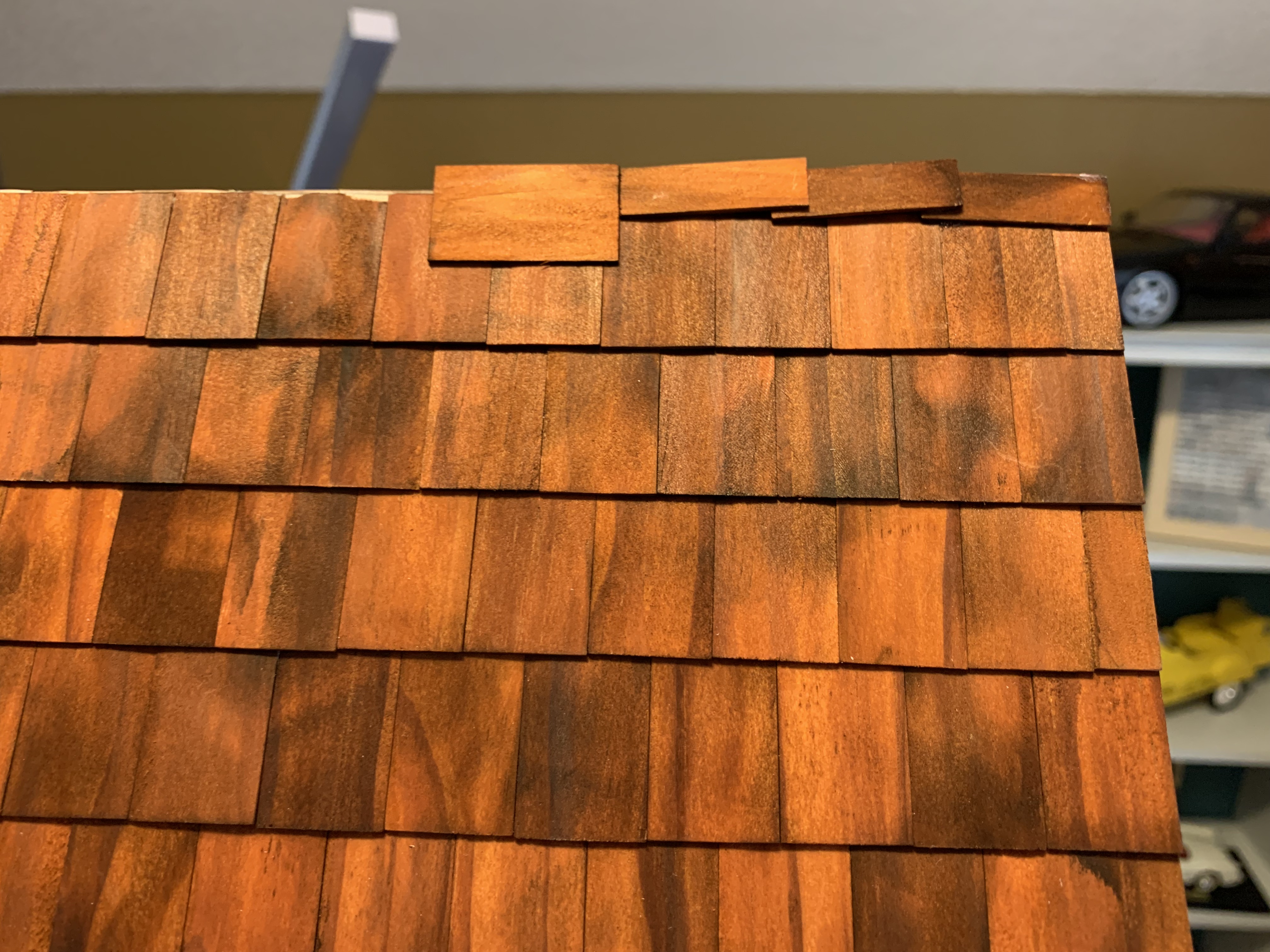 … so instead, I cut shingles in half to keep the same “reveal” …