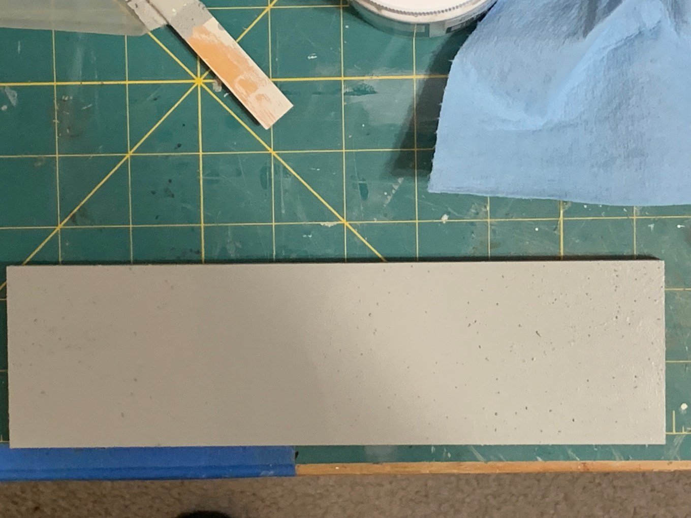 I tried another piece of pre-painted MDF with less paint but then it didn’t seem to have much grit.  So, I tried using straight brush strokes but that was not satisfactory either.