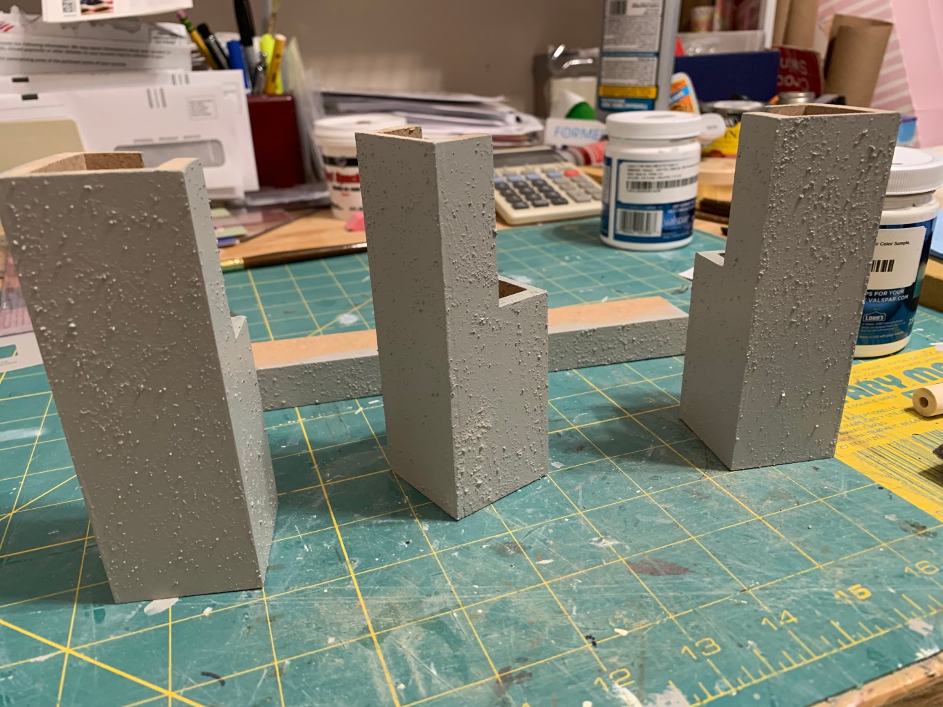 With this practice experience under my belt, I decided to paint the real pieces.  I started with the foundation and was pleased with the texture.