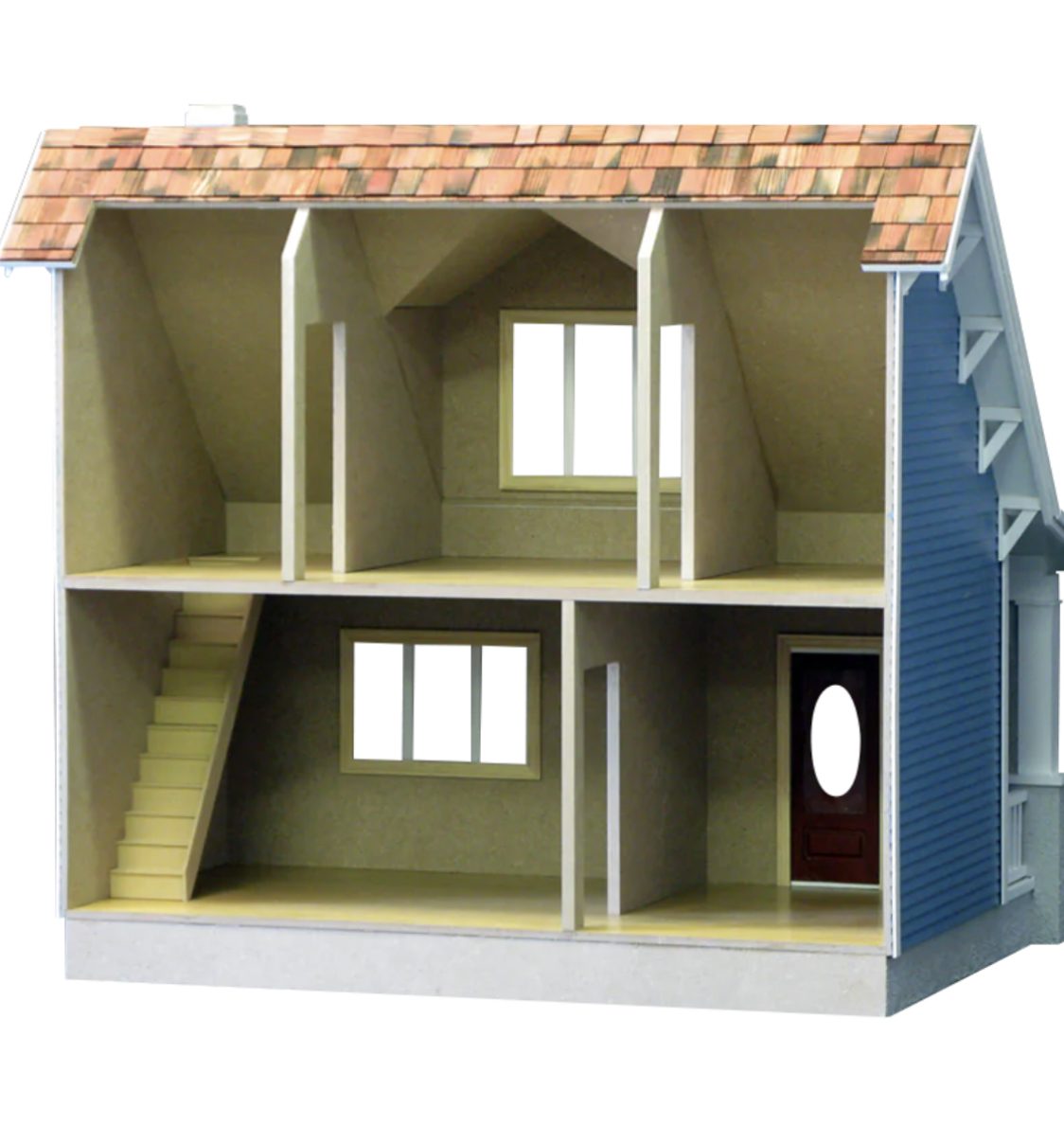 The stock interior finish for this doll house includes partial walls to create two rooms on the first floor and three rooms on the second floor. With this being a smaller house, this makes some of the rooms quite small. To create more open space, my sister decided to delete the wall on the first floor to create one large room and delete the left side wall to create a large master bedroom and then a smaller nursery. This meant that painting the first-floor walls would be quite simple as I would only need to paint three walls.