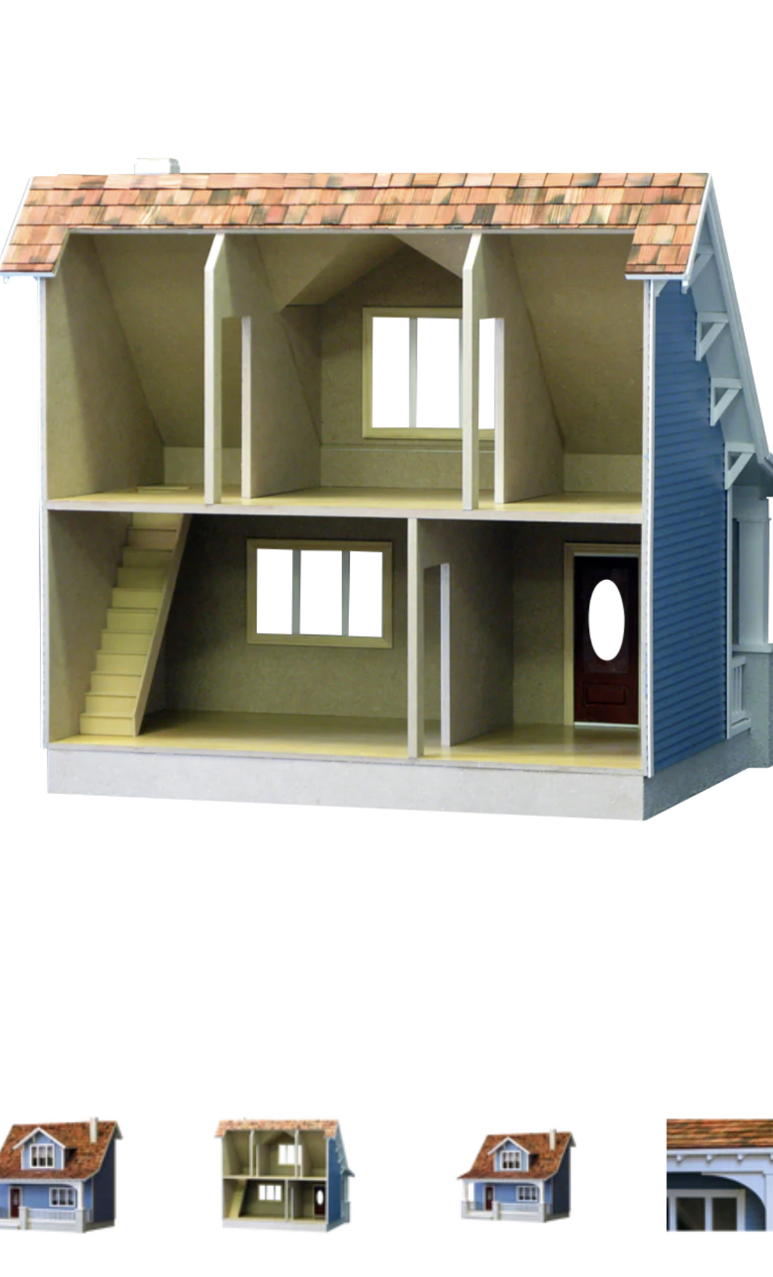 Turned out the wall placement aligned with the roof dormer opening so that made knowing where the two different colors would be easy (and my sharp-eyed readers probably realized that placement was obvious from the stock interior photo above obviating the need for me taping the house together). But then I had to ponder something. Should I paint the ceiling white as typical? If so, then there would only be a very small amount of wall painted the room color (just about 1.5 inches of wall between the 2nd floor and ceiling). Or should I paint the ceiling the room color? Or should I create an artificial wall partway up the ceiling by drawing a line say, 4.5 inches up and then painting below the line room color to create a six-inch wall?