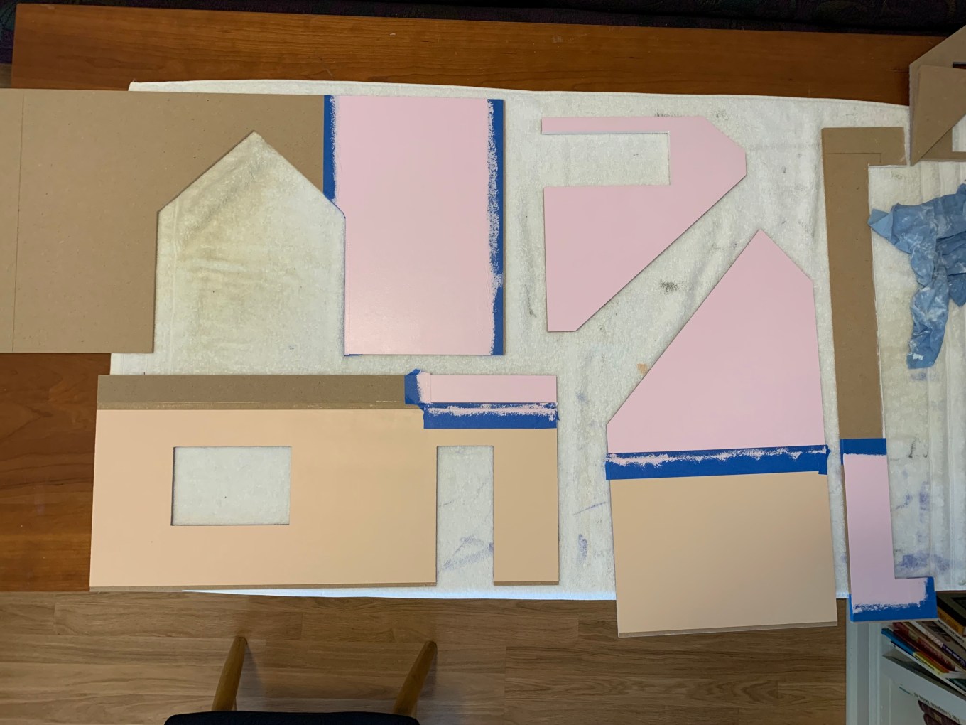 The painting process is the same for each doll house; first paint the exterior and then the interior.