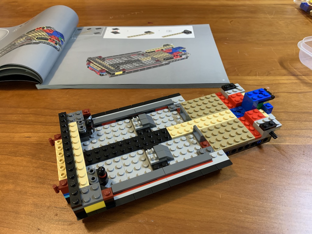 When I was on the last step of bag #3, I went to attach the last subassembly, but it would not fit. Comparing my model to the picture in the manual, I could see that the two center bricks were off by one row of lugs. Getting them off was a challenge that the little orange tool did not help with and so I had to get a sharp knife to pry the pieces apart. But once removed, it was easy to relocate them to their proper location and attach the last subassembly. Lesson to self, pay better attention to the drawings.