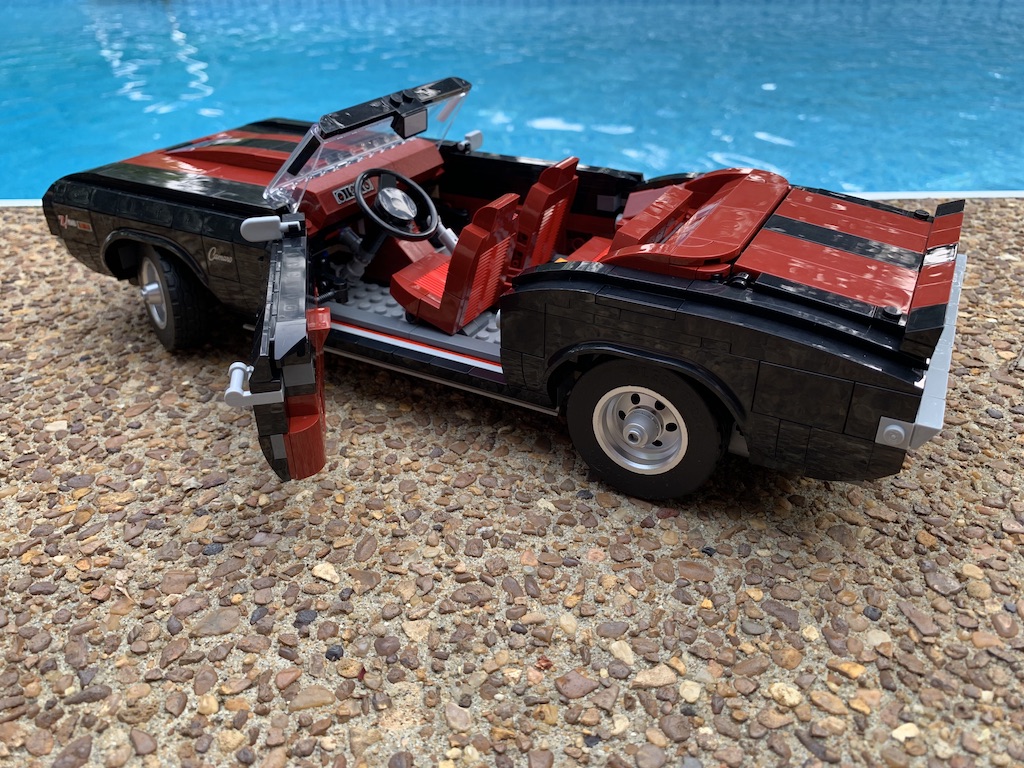And as with the LEGO Mustang, I decided to get some shots of the finished car outside by our pool.
