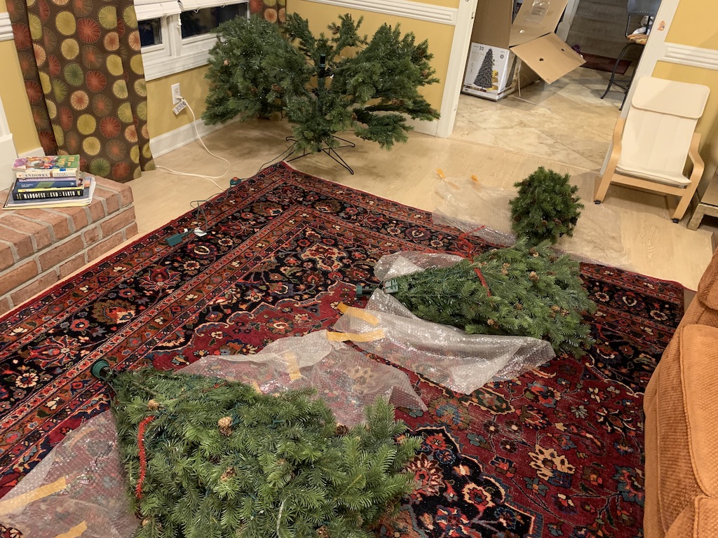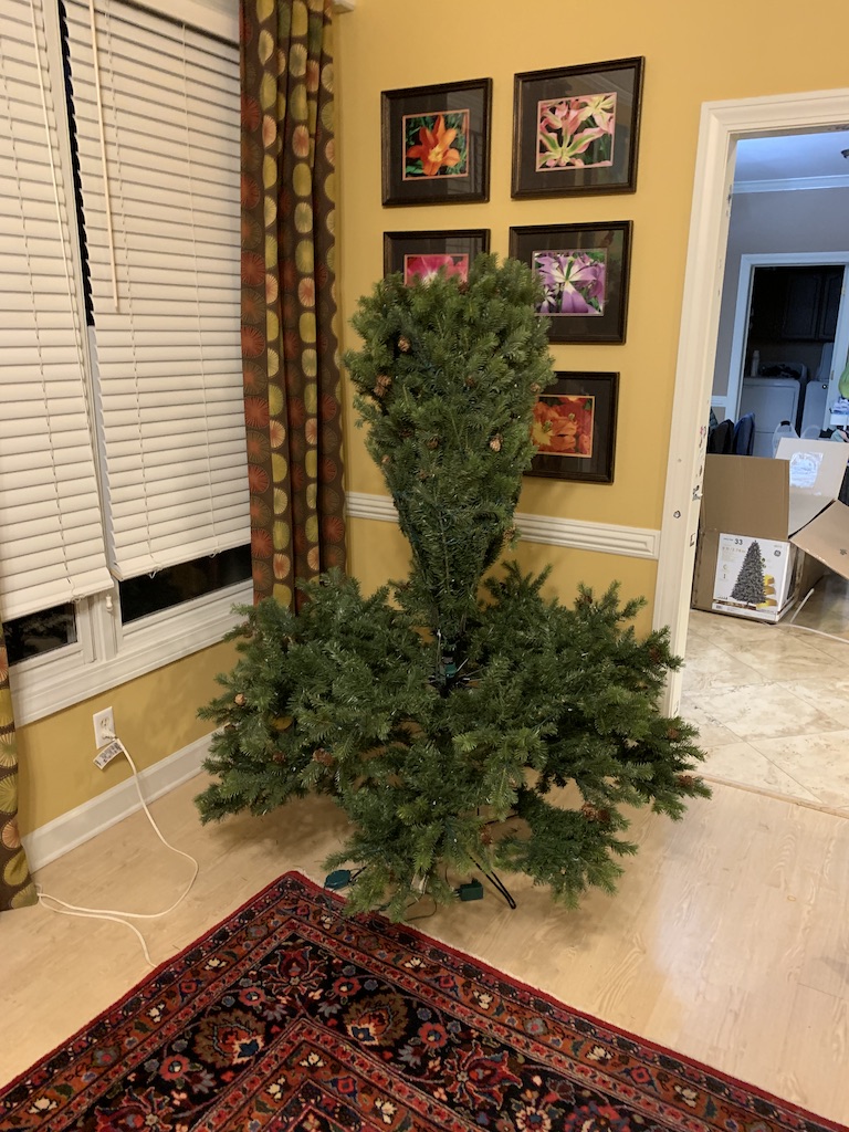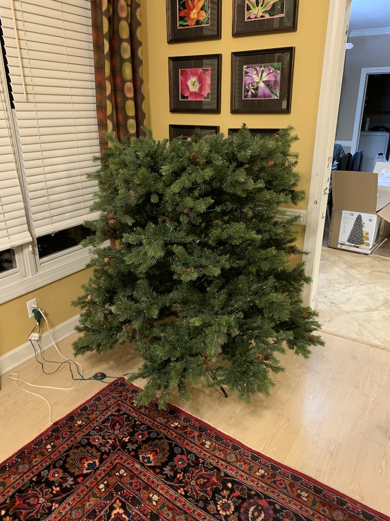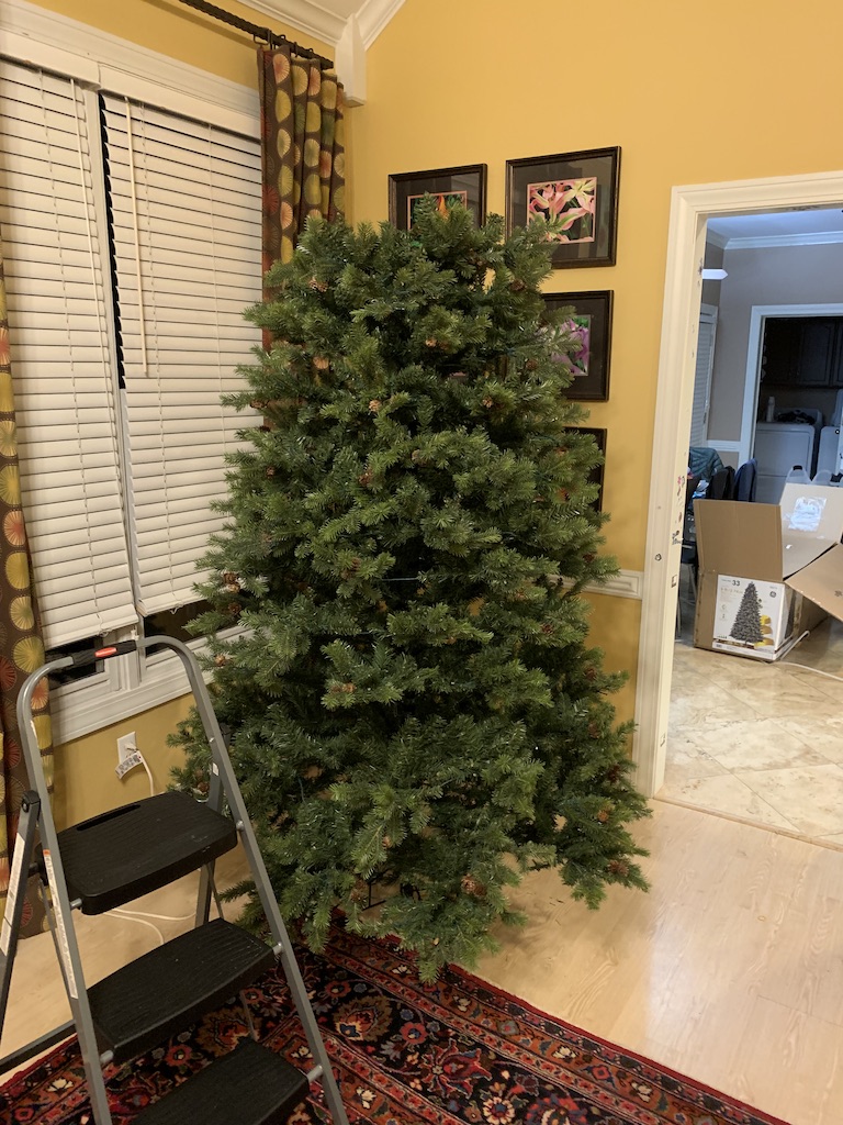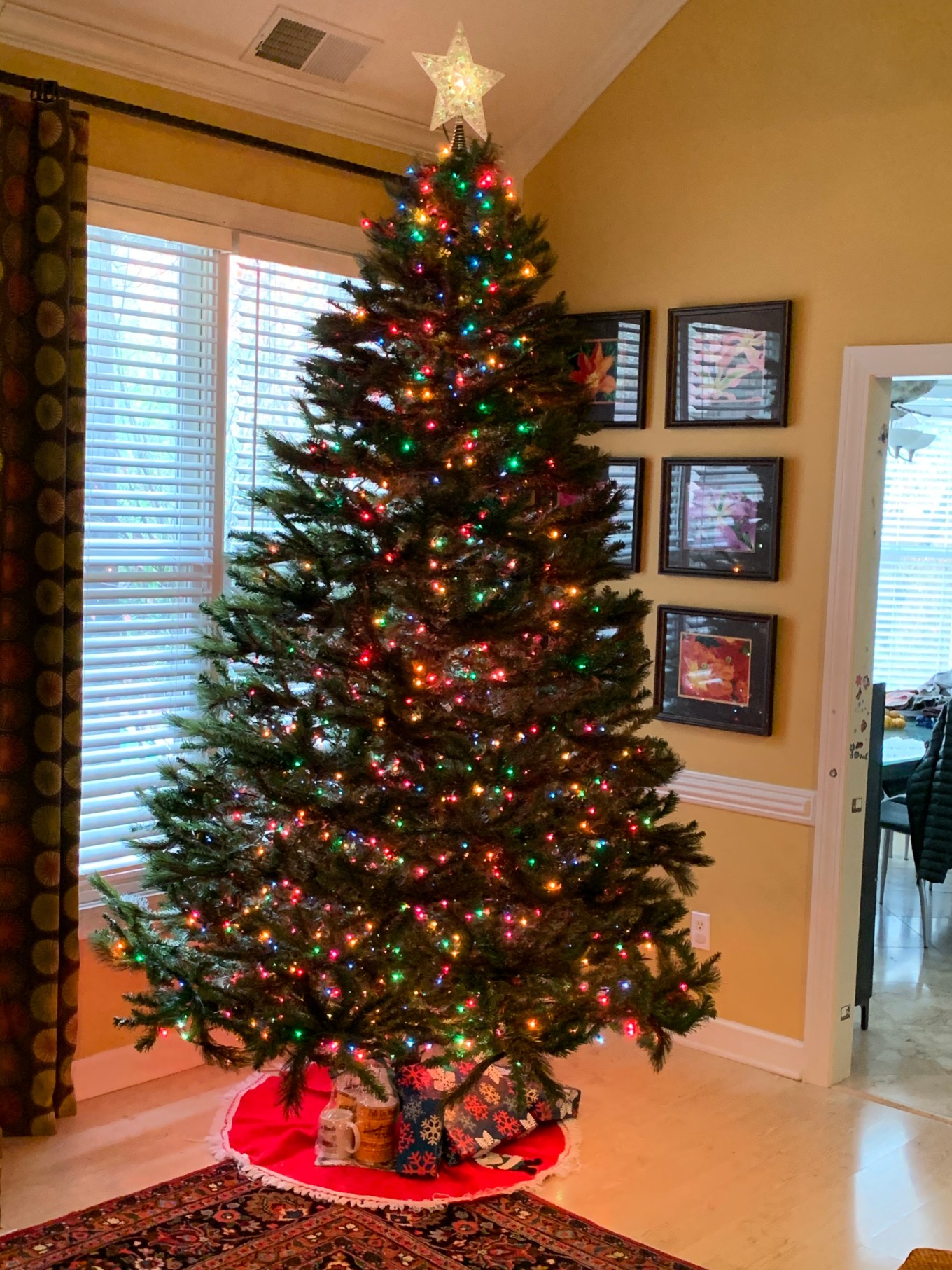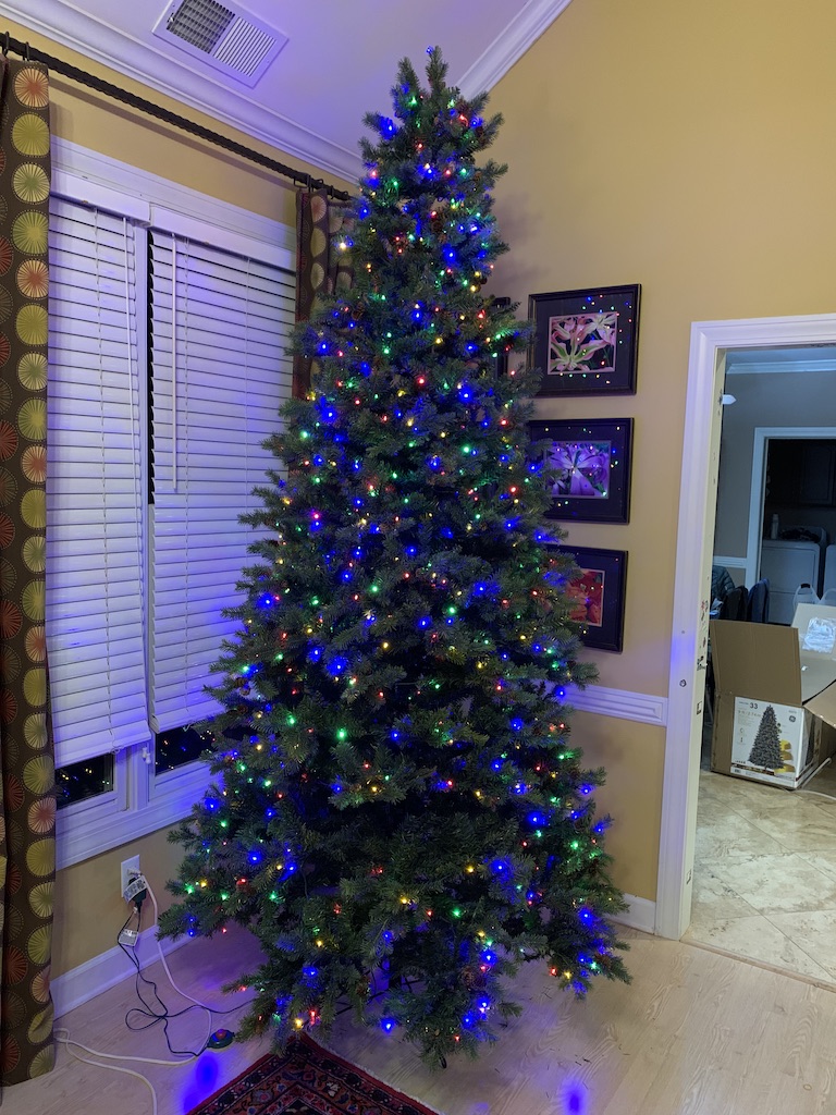 There were two reasons I had been resistive to buying a new pre-lit tree. I had not run across one that had as many lights as the 1,600 I typically put on our tree. The other reason is I had also not seen a tree that was as large in diameter. But the hours-long pain of attaching its 94 individual branches while simultaneously weaving the 16 separate 100-light strands overcame my hesitancy.