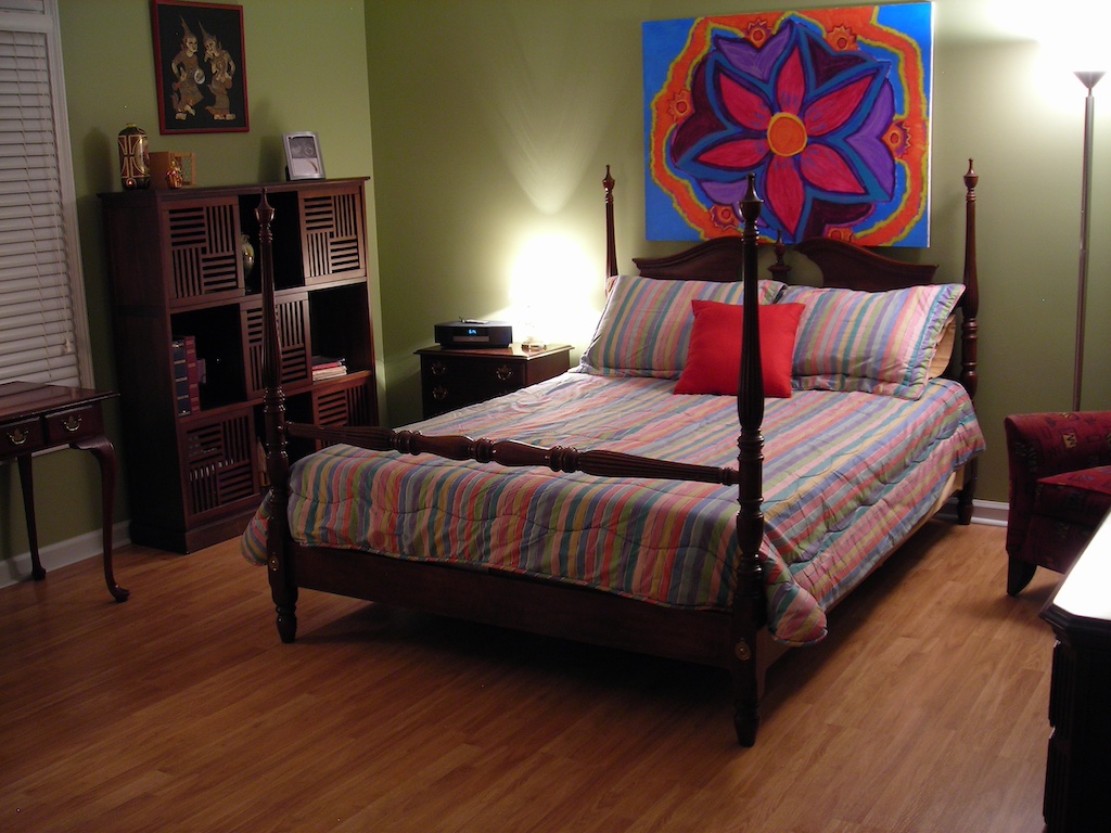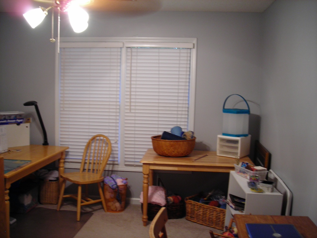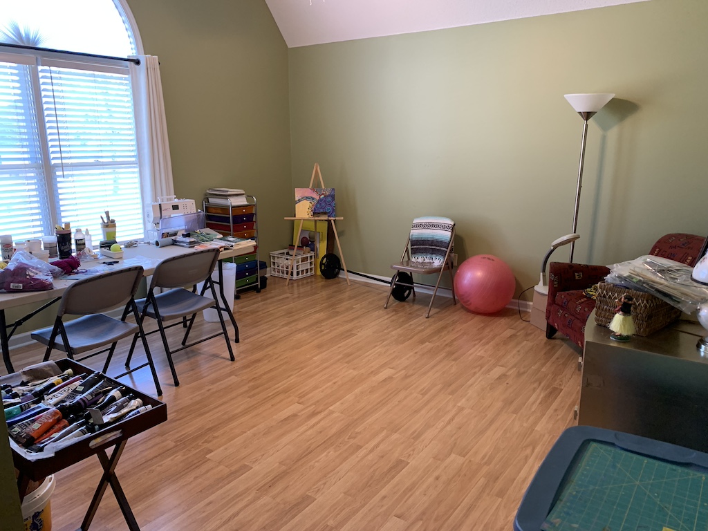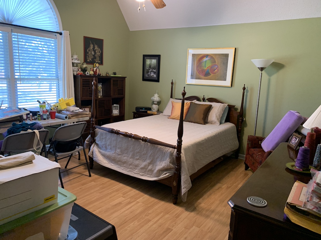 Sometime afterwards, we moved a long table into the bedroom so my wife would have space to paint and sew, but it was shared space as the room still had all of the bedroom furniture in it.