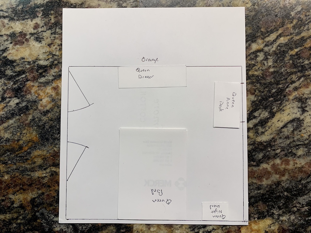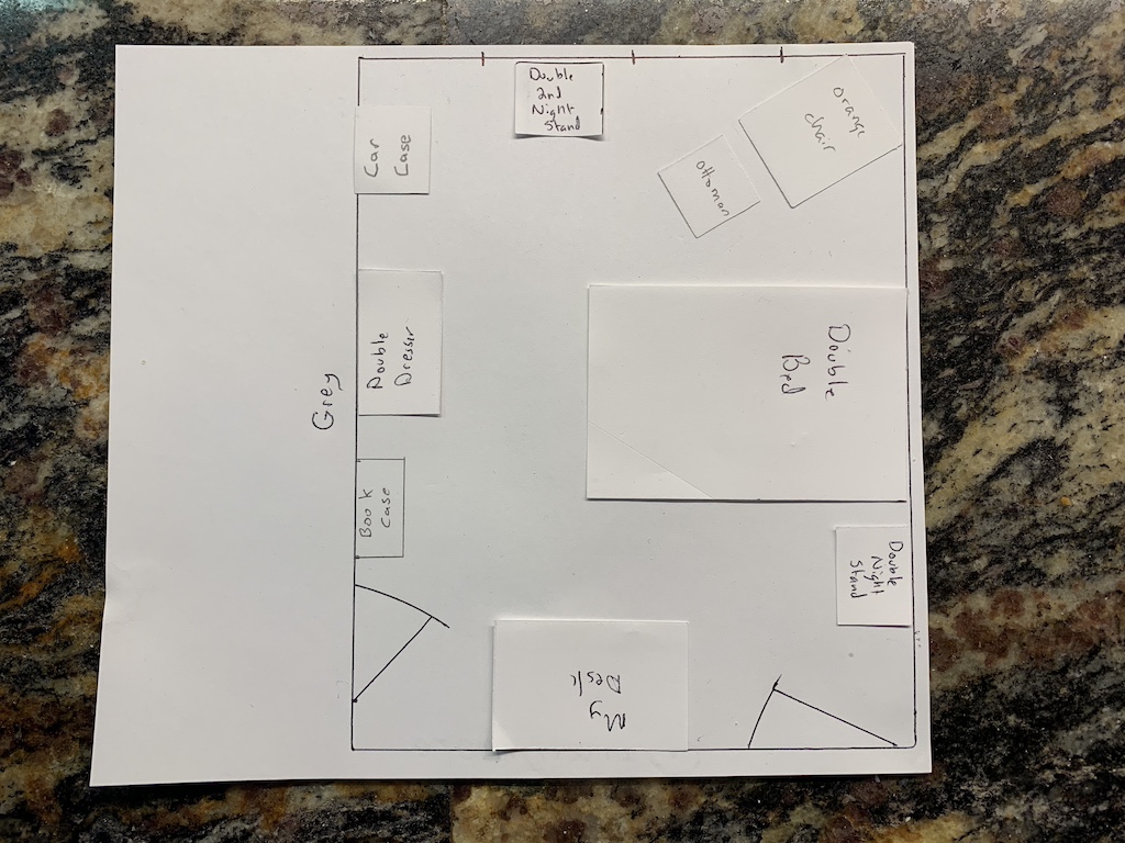 Before moving anything, I decided to draw up a scale drawing of the two rooms and the furniture to make sure everything would fit.