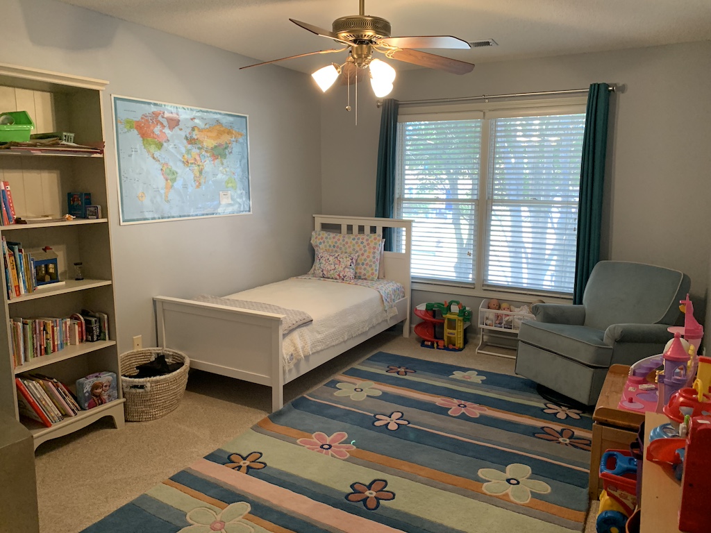 But once we started having grandchildren, we turned it into a room for our grandchildren to have sleepovers with first a baby bed, and then a twin bed for older grandchildren along with lots of toys.