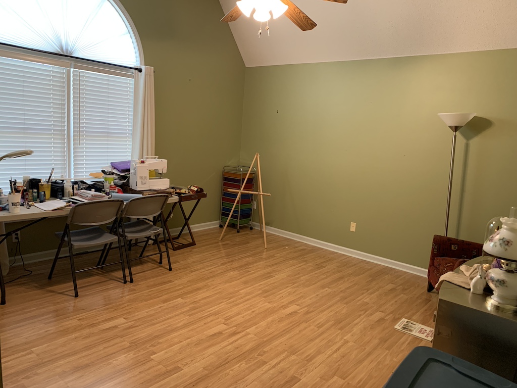 Finally in November of 2023, after numerous conversations about how she really wanted more space to be creative, we decided to turn this bedroom into her art studio. Making it a dedicated studio would necessitate moving all of the bedroom furniture out. But where it would it go?