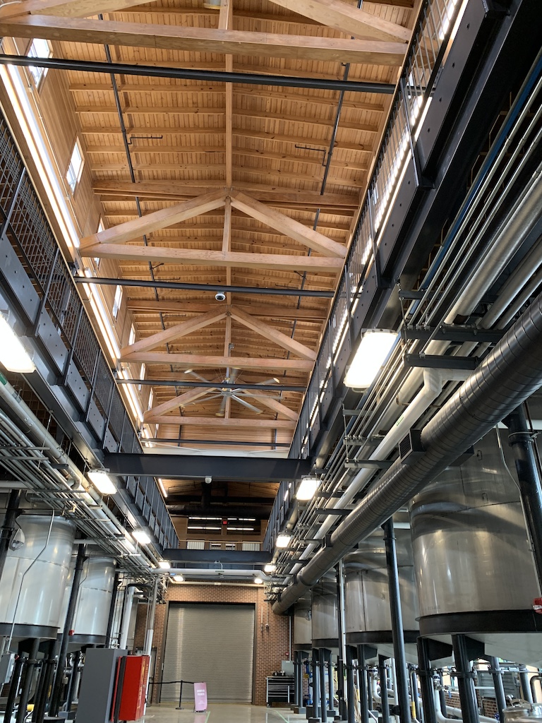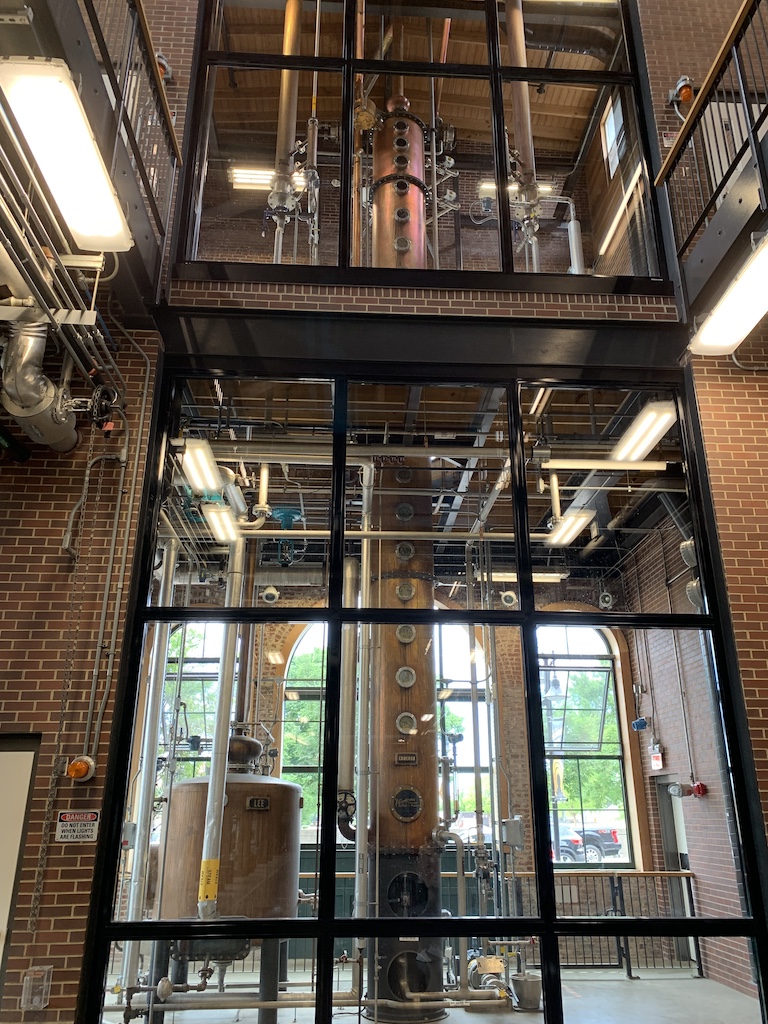 Angel’s Envy was founded in 2010 and the full-scale operation opened its doors to visitors in 2016.  It was essentially brand new, and its equipment showed it.  From the shiny manufacturing tanks to the beautiful wooden ceiling (which had to be added to the old, abandoned building since the original roof rotted away).