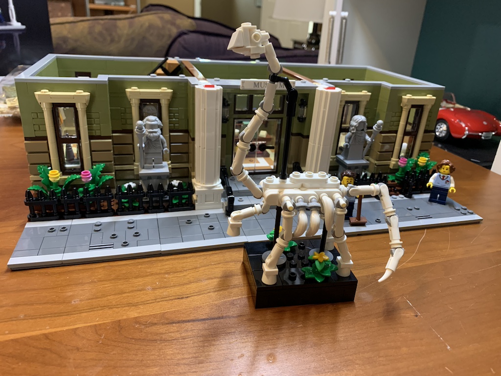 With the museum complete, I could now place it as the centerpiece of my little LEGO block and look forward to showing it off to my grandchildren upon their next visit, the youngest of whom has recently developed an extreme interest in dinosaurs!