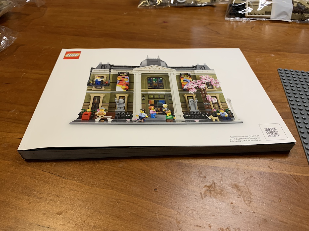 When I went to the LEGO website and pulled up the kit, I was surprised to find that this kit had a significant price increase over the two previous ones I had purchased (about 30% higher than the Boutique Hotel and the Jazz Club). Looking at the picture, I could see the museum had a wider footprint than the other two buildings which could explain the higher price. But undeterred, I made my purchase.
