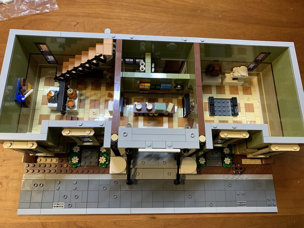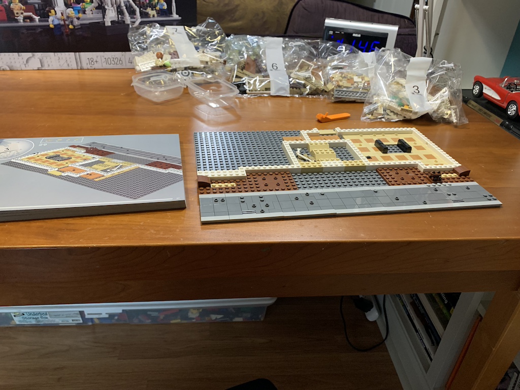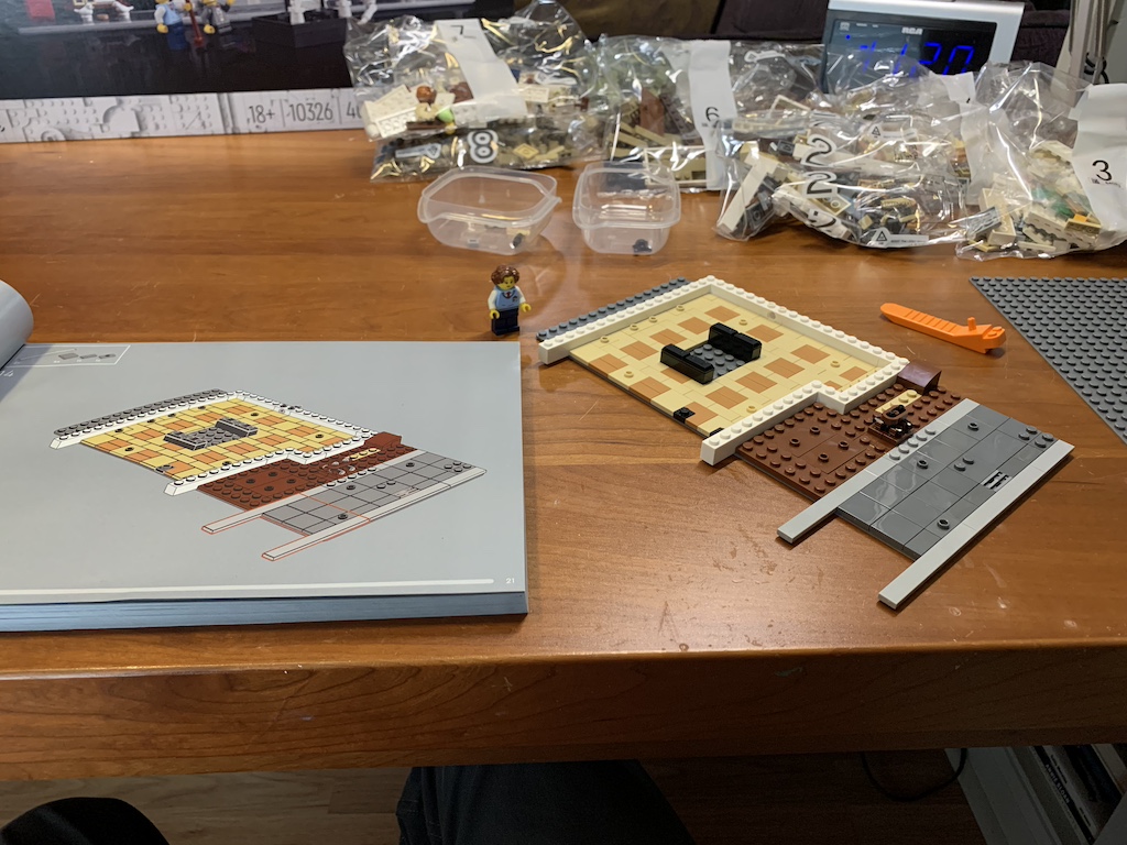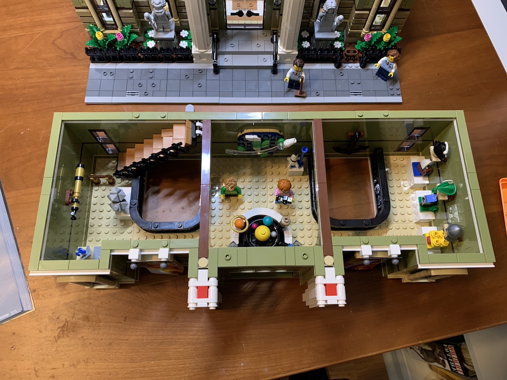 Just like when I am working on a 2-D puzzle and I don’t want to stop, I continued with my 3-D LEGO fun, and before I knew it, I had finished off the next five bags (through bag 12) which completed the interior of the first floor including the stairs up to the second-floor exhibits.