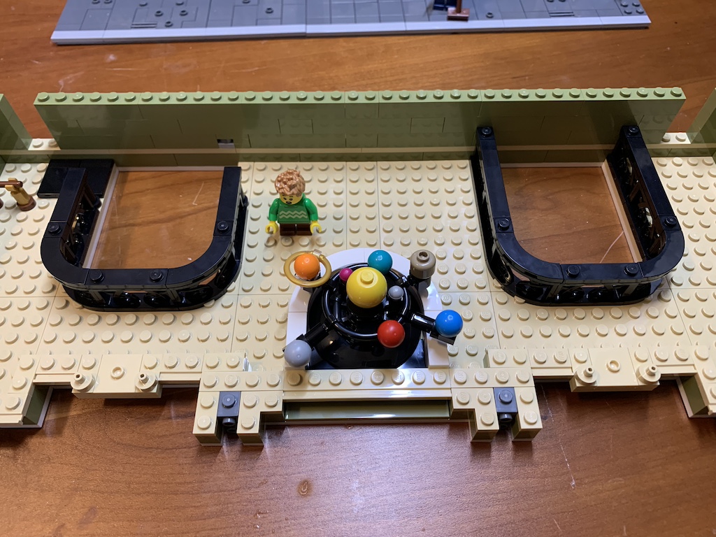 The next several bags formed the second-floor foundation along with partial walls before adding the space exploration exhibits, first the colorful orrery of the solar system…