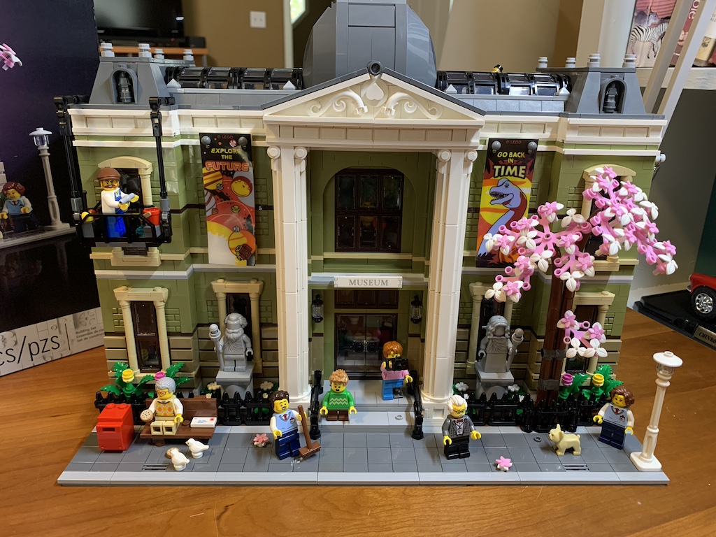 With the museum complete, I could now place it as the centerpiece of my little LEGO block and look forward to showing it off to my grandchildren upon their next visit, the youngest of whom has recently developed an extreme interest in dinosaurs!