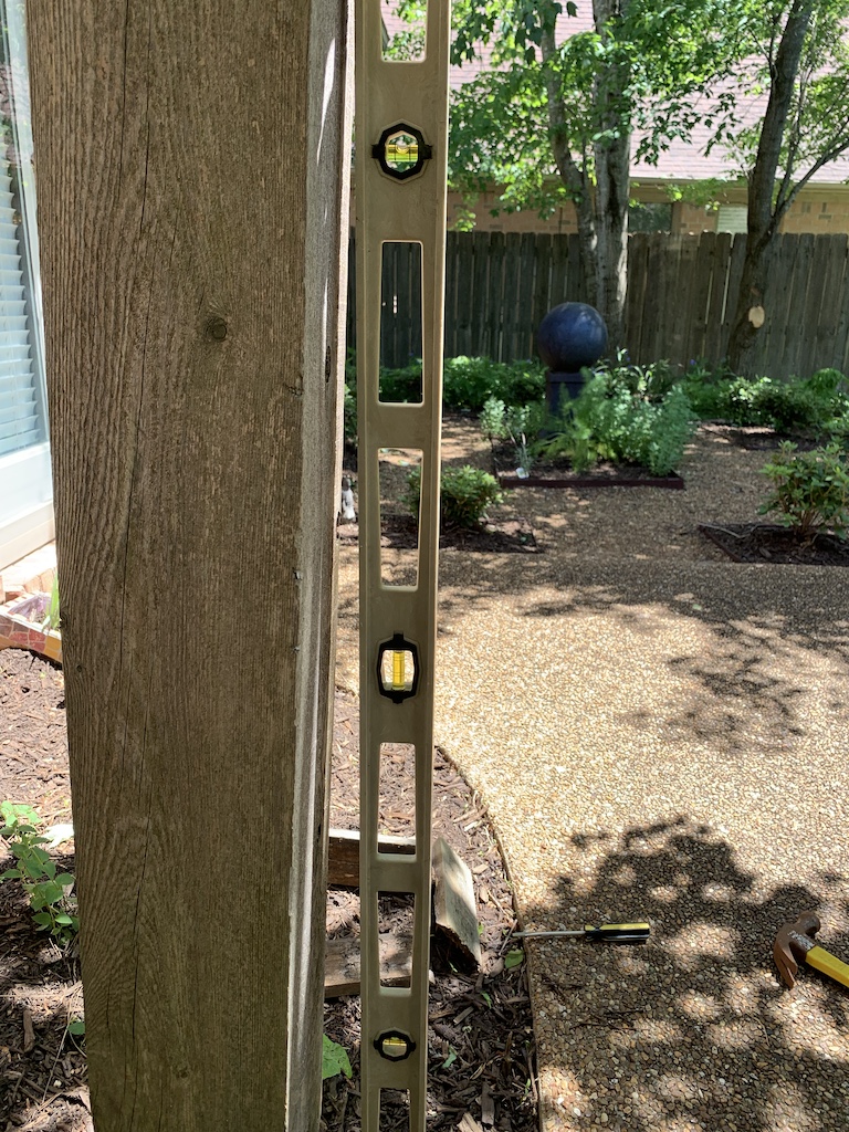 In the photo above, you can see how far out of plumb the post had become (the bottom of the level was up against the bottom of the post).