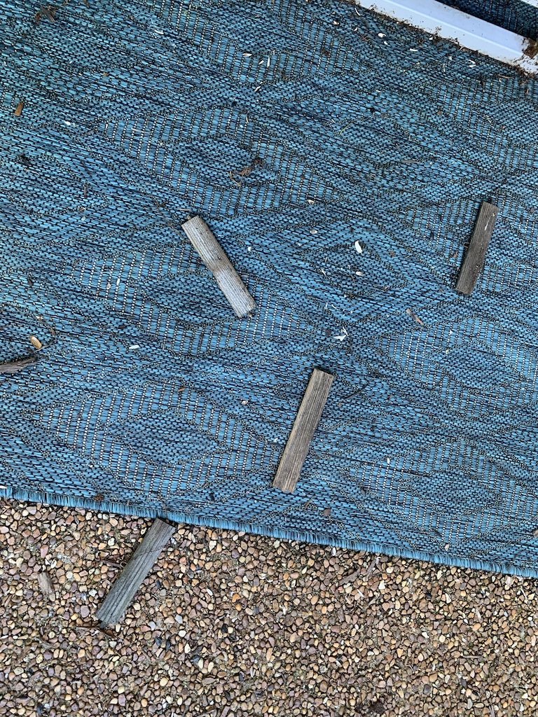 You may recall for the roof of the pergola; we had purchased random sizes of shudders from a home salvage company.  They were all old but in fairly good shape.  Unfortunately, in hindsight, we did not consider that they were indoor shudders—not ones designed to be exposed to the harsh outdoor elements day after day, year after year.  I don’t recall what year the little slats first started falling out of the shudders but occasionally we would go out and find one or two on the ground that I would just pitch in the trash.