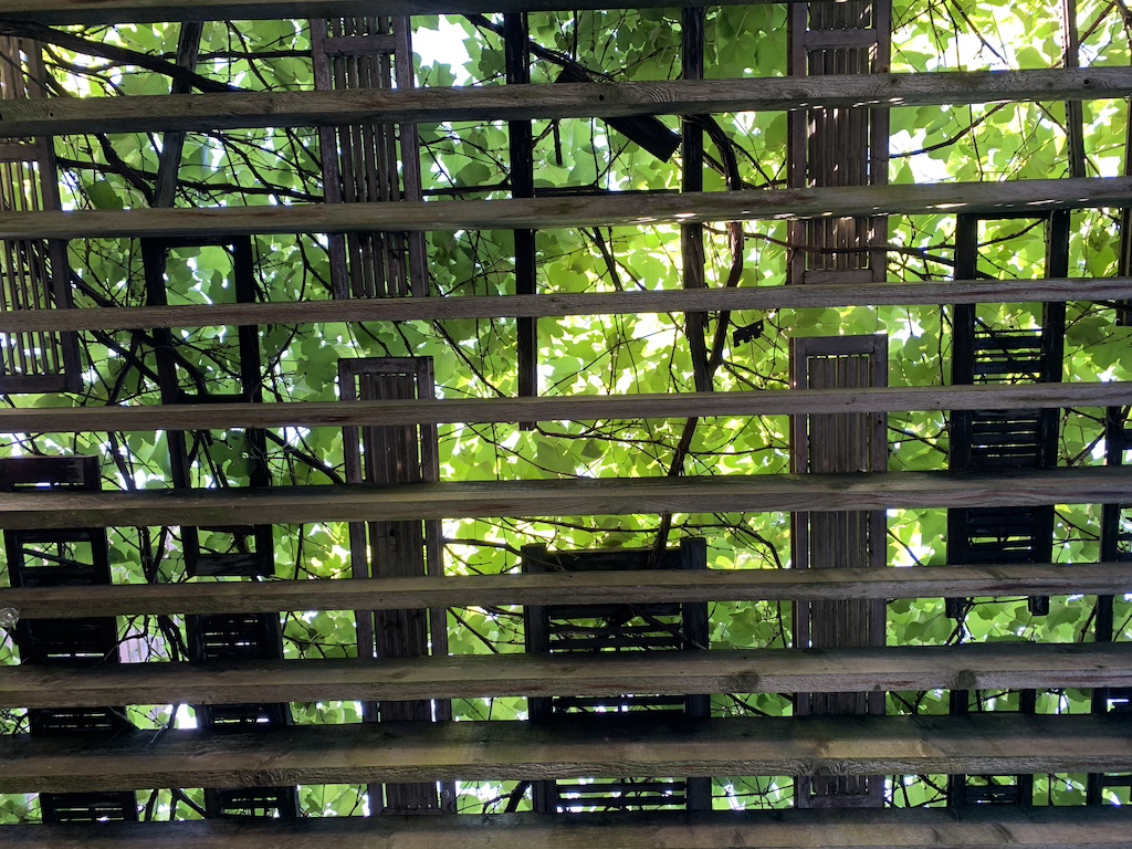 So, for now I plan to return to the aesthetic issue with the shudders.  When my son was here and I asked him about this problem also, he wondered out loud that with the full canopy of the vine now providing shade, maybe it was time to ditch the shudders all together.  Could it be that if I procrastinate long enough, all the slats will fall down and there will be little left to remove.  I am sure this solution does not suit my wife but then again, I can’t really do anything until the fall when the vine loses all its leaves.  For now, it is just a waiting game.