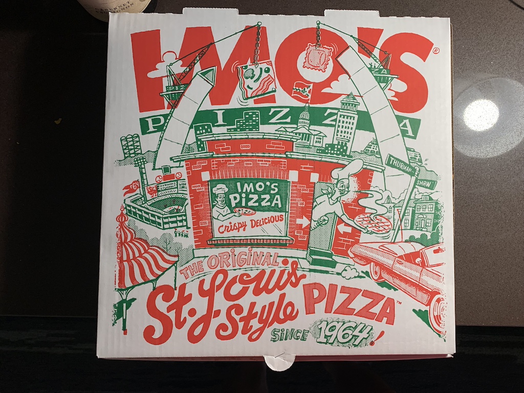 Returning to our hotel after vigorous play, she asked if rather than going out to a restaurant, we could order in.  We agreed and ordered for her, her favorite fried chicken and fries.  My wife and I decided to try St. Louis style pizza which I didn’t even know existed.  With a cracker thin crust, it reminded us of a pizza we often get in Memphis.  It was so delicious in fact, we quickly devoured it (sorry, only a picture of the box afterwards).