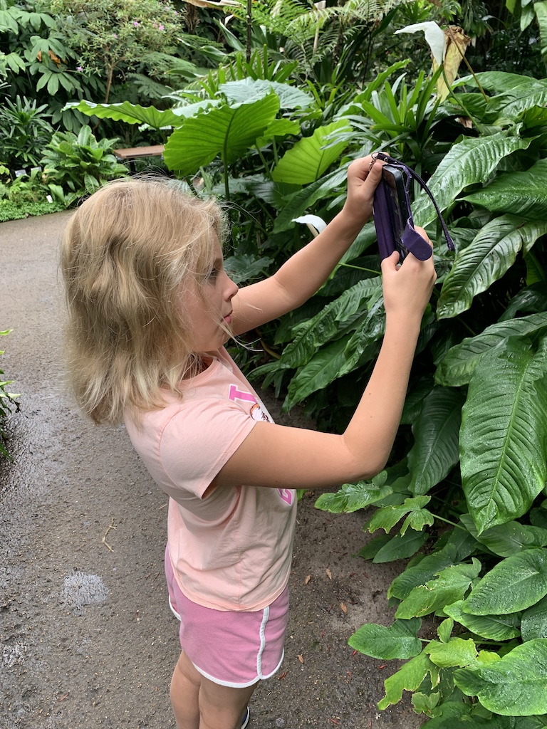 Once inside the tropical forest dome, our granddaughter enjoyed taking numerous photos of the plants and flowers with my wife’s phone.