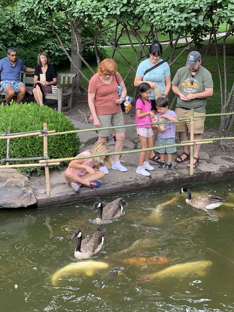 At the Japanese Gardens, she once again got to feed the fish, although some Canada Geese were competing for the food.