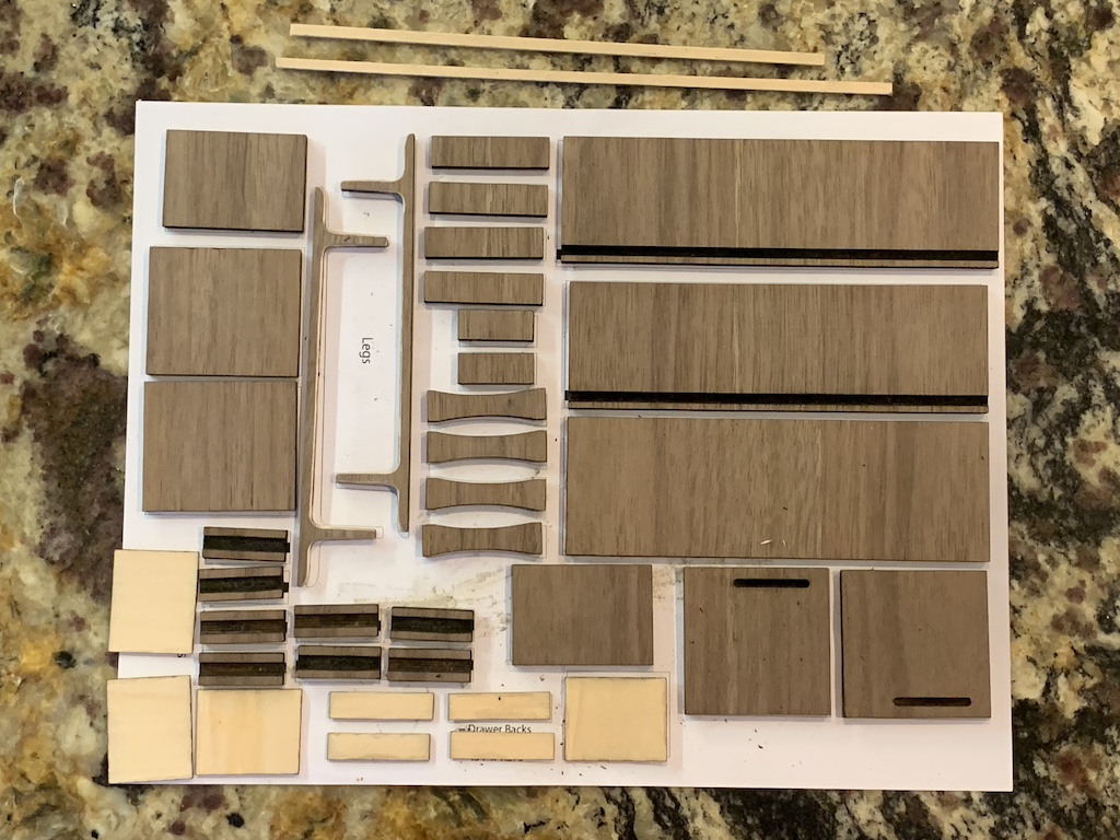 Even though these cut plywood parts would render a functional but less than desirable model, my sister suggested I still use them to practice putting a credenza together.