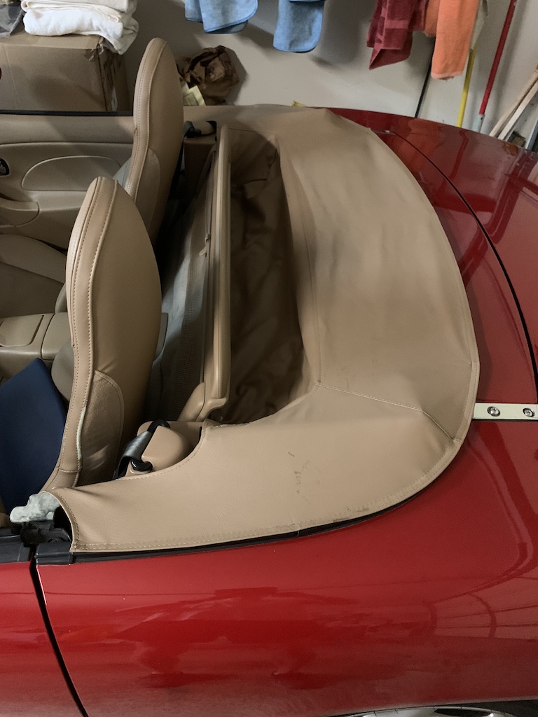 Once I had made the decision to keep the car in the garage with the top down, I even attached the boot cover which covers the retracted soft top and gives a convertible a nice clean finish.  This is even more of a hassle to put on than just lowering the top.  And since I had not put in on in years, I really had to stretch it to get it attached.