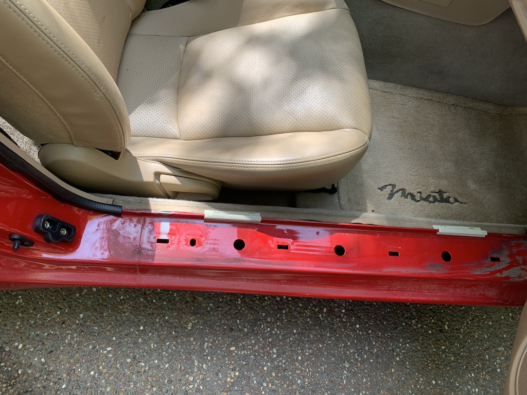 Early last Spring, I discovered that over the winter, rainwater had gotten retained inside the rocker panel on the passenger’s side (in case you don’t know, the rocker panel is the part of the car below the door).