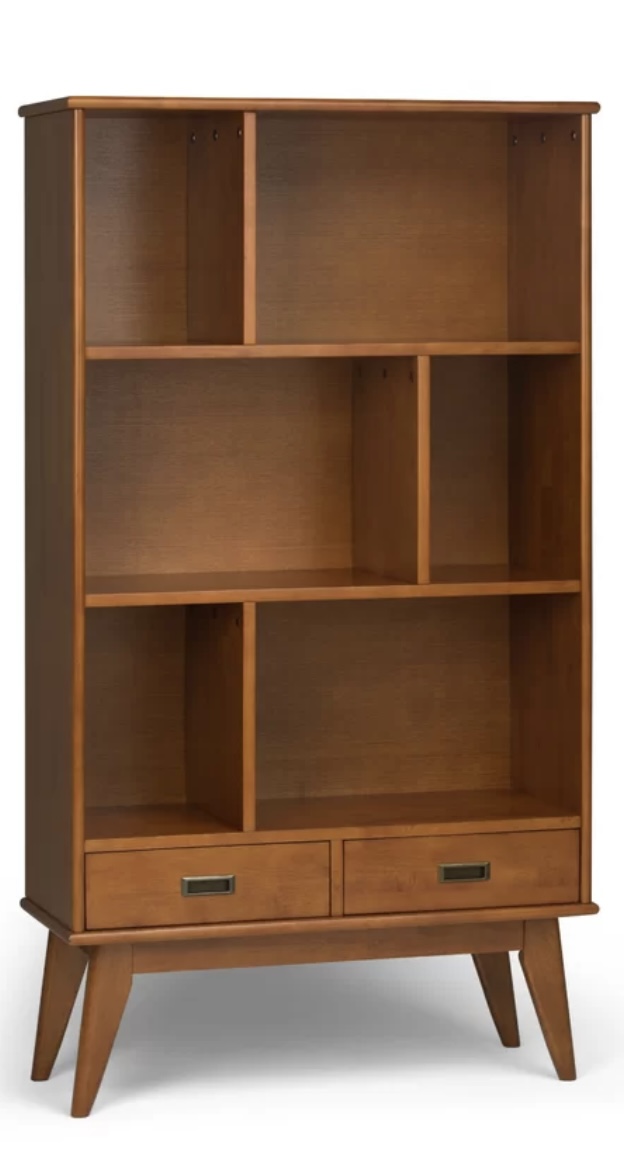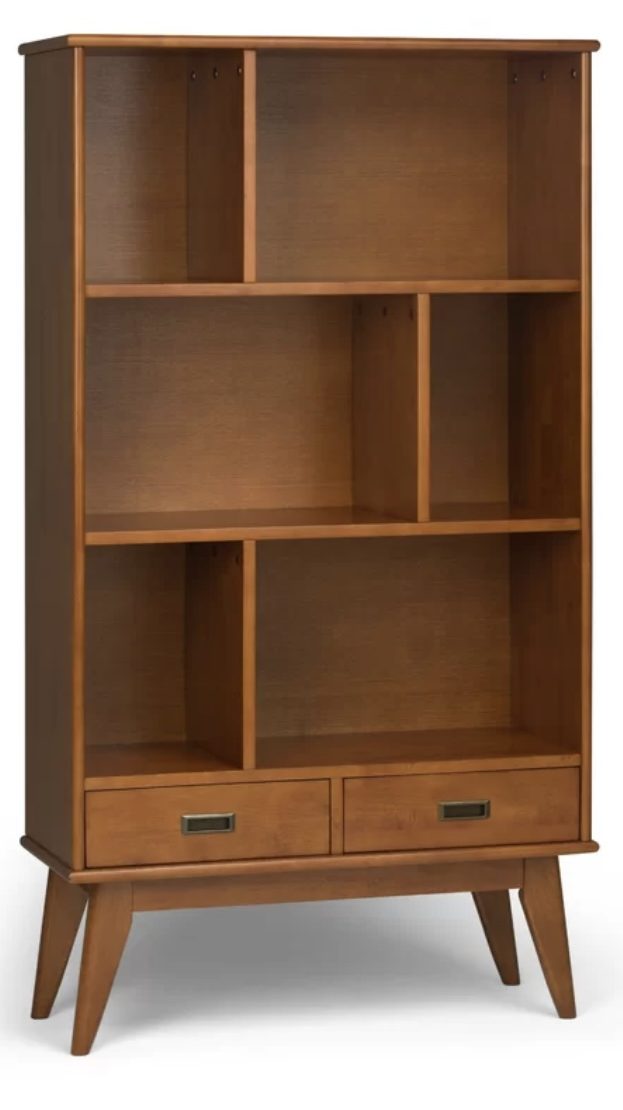 I thought a mid-century modern bookcase would look nice in here. I found this one also and asked my sister about it. She said yes that would not be a problem either.