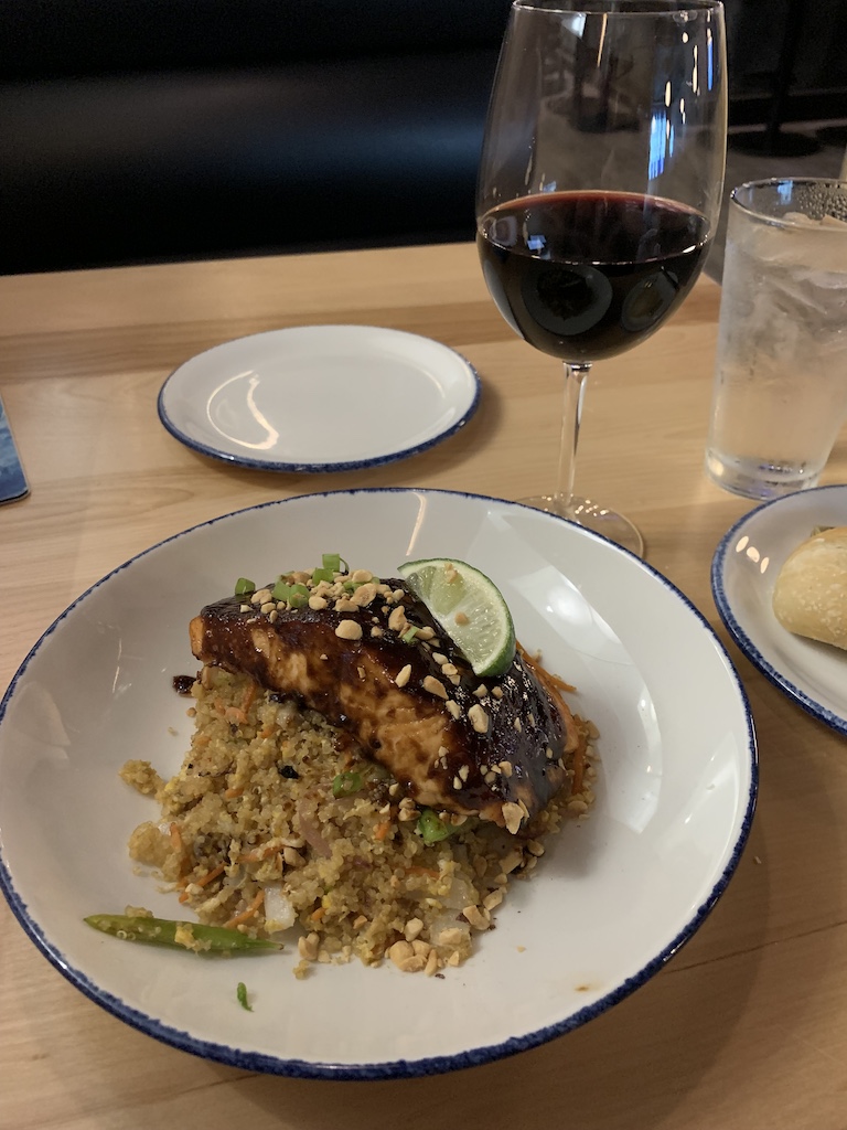 The first night was sumptuous salmon and the second night was delicious scallops.