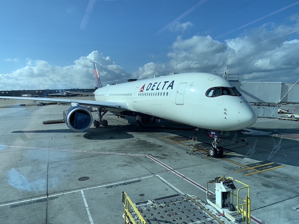 When we finally got on the plane, we saw it was packed.  When we got to our row, there was a young woman sitting in my window seat who did not speak English.  I was so flustered, I just motioned that she could stay, I would sit in the middle seat for this short flight.  Thankfully, there was still overhead bin space for us to store our carryon luggage.  Once the door was closed and we buckled up, the pilot came on and announced first in French and then in English, that we were on a 30-minute air traffic ground hold.  I thought wow how frustrating after all that rushing but as it turned out, had that not happened, the plane would have already left as we were late getting to the gate.