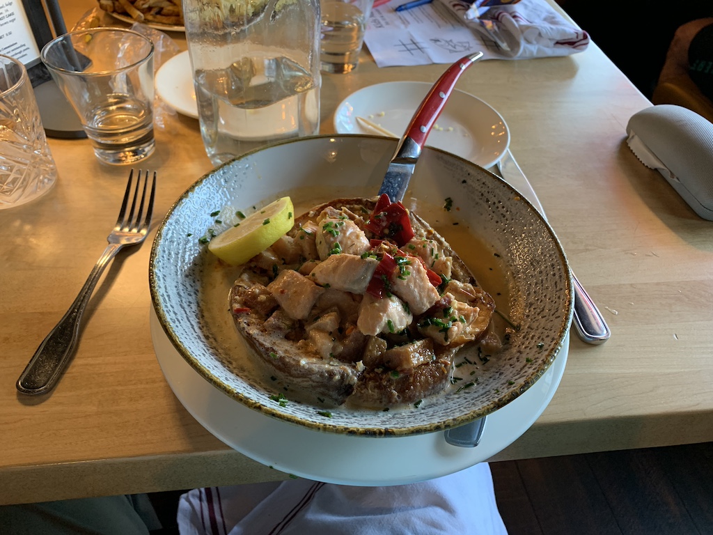 We checked into our hotel by the airport and then found a great restaurant nearby that we will definitely have to go to again on another trip (below is my dish, salmon and bacon on sourdough bread).