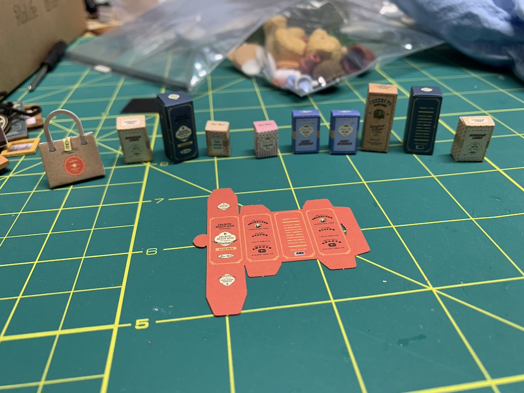 As I worked, I was pleased to find that many of the furnishings (chairs, cabinets, etc.) were so well engineered, they simply snapped together tightly without the need for any glue. I did find using the double-sided tape a bit challenging at first and so rather than using them to attach the different signs to their wooden support, I used a glue stick which made the process much easier. I was actually surprised how quickly everything came together, certainly aided by how easy it was to remove the die-cut artwork.