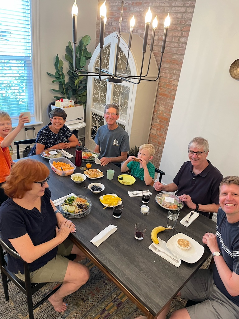 No sooner had we settled in that I learned that my daughter’s in-laws had also driven down from Illinois for the visit. I was delighted to find out we would get to see them as well as we have grown quite close to them over the years of our daughter’s marriage. And every time we have been together, I have learned so many scientific and practical things about their farming lives. Not to mention enjoying some of the delicious corn and tomatoes they have grown on the farm that they often share with us. And over the next five days, we got a wonderful chance to spend time with some or all of our son-in-law’s family.
