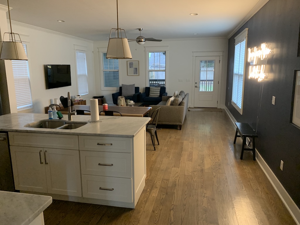 We got to the house first and let ourselves in. I saw no evidence of prior confetti use, but I could see that this might be a popular bachelorette rental. Between the framed musician photos…