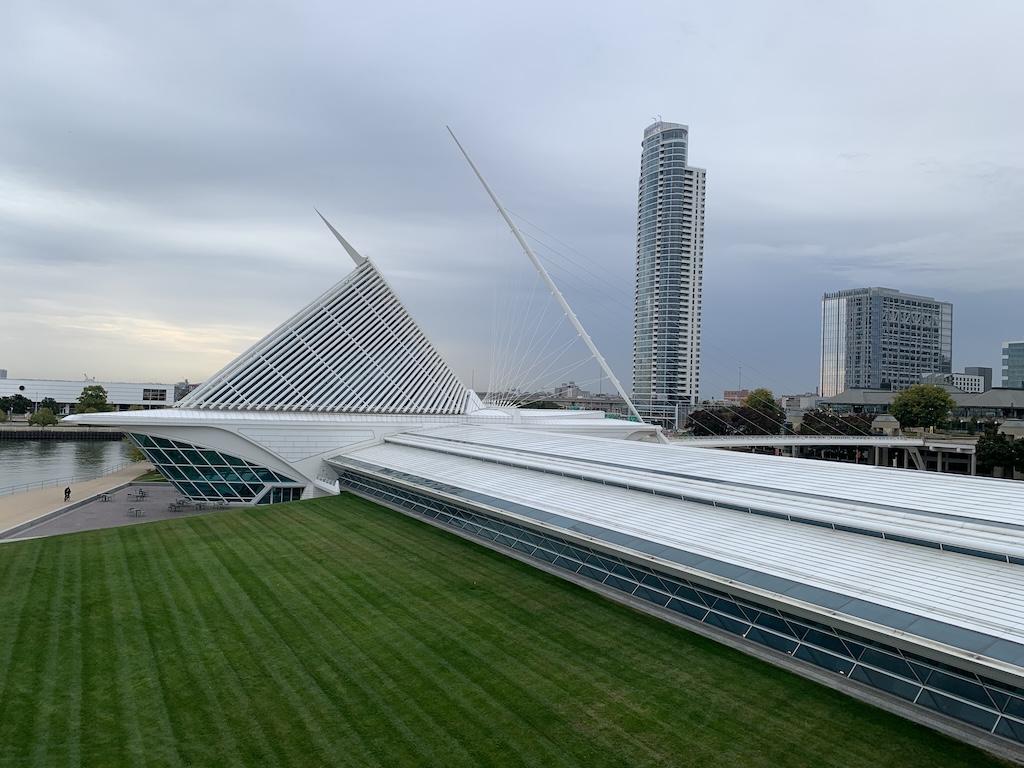 Monday was our last day together and we started off riding their free tram down to the lake front.  We had a very nice walk along Lake Michigan sipping on our coffee.  It was too early to visit their Milwaukee Art Museum and unfortunately, we didn’t have the time to wait for it to open but still enjoyed viewing its building from the outside, which reminded me of the bow of a ship.