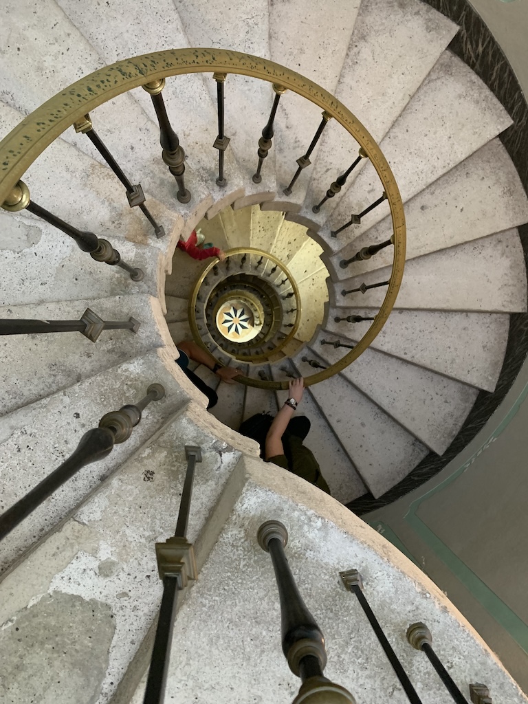 There was a grand staircase up to the second floor, but it also included a 3-story spiral staircase.