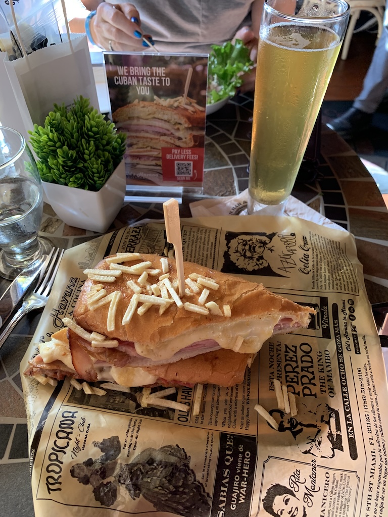 We finally found a restaurant quiet enough for us to enter and to have that Cuban beer we had been thirsty for.  After a while we decided to make it an early dinner as well.  And of course, I had to have a famous Cuban sandwich which was absolutely delicious, one I told my wife was one of the best sandwiches of any kind I had ever had.