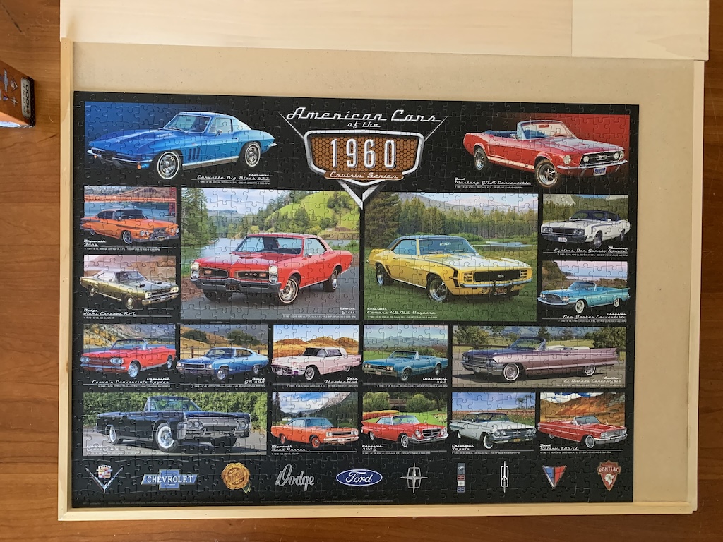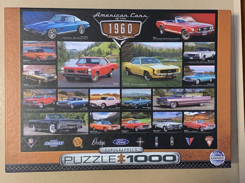 Almost every year I usually assemble a car-themed puzzle, and a quick inventory of my puzzle closet revealed a total of six boxes so far. Not always, but often these I purchase myself as I run across them during the year. But whenever I find one, I always save it for January.