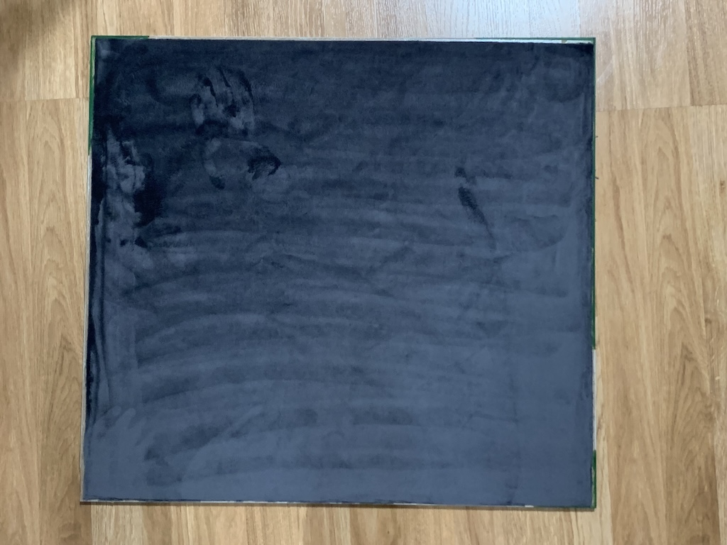 To prepare the garage floor, I first painted it black to hide any imprecision of my manual cutting and then laid down carpet tape.  I measured the size of the garage floor and found it to be 353 square inches.  Which means, I would need to manually cut at least 353 squares.